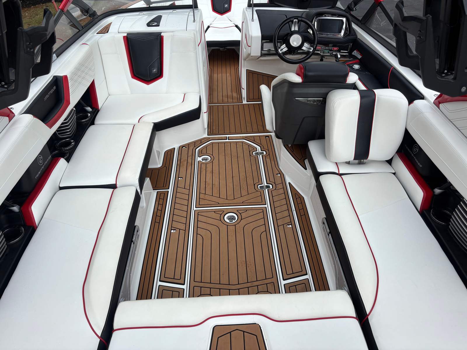 Easily surf left to right at the push of a button. Equipped with premium JL Audio, the digital screen makes it possible to control everything at the helm, keeps this boat at the top of the food chain in not only wake performance but also interior functionality.