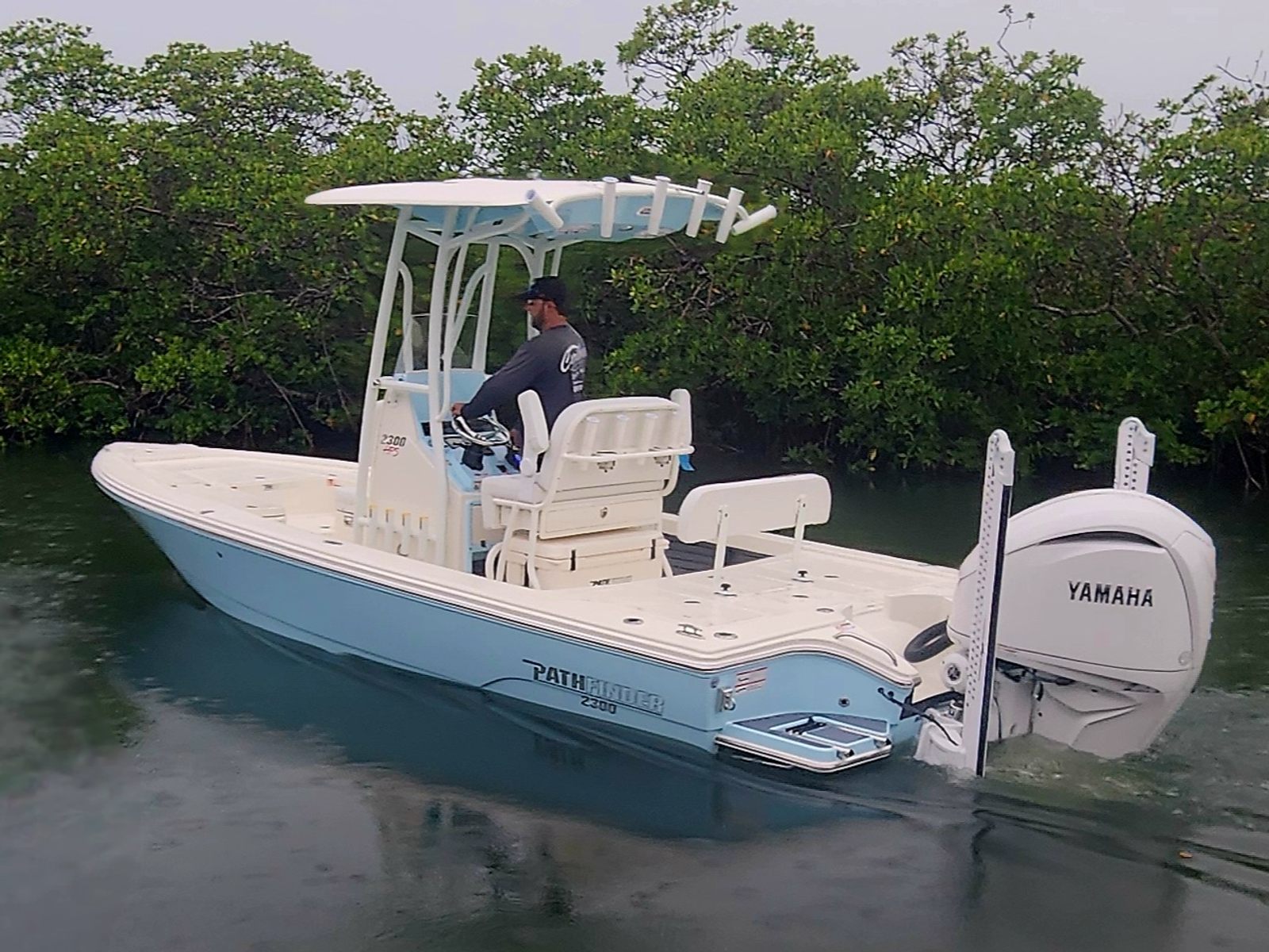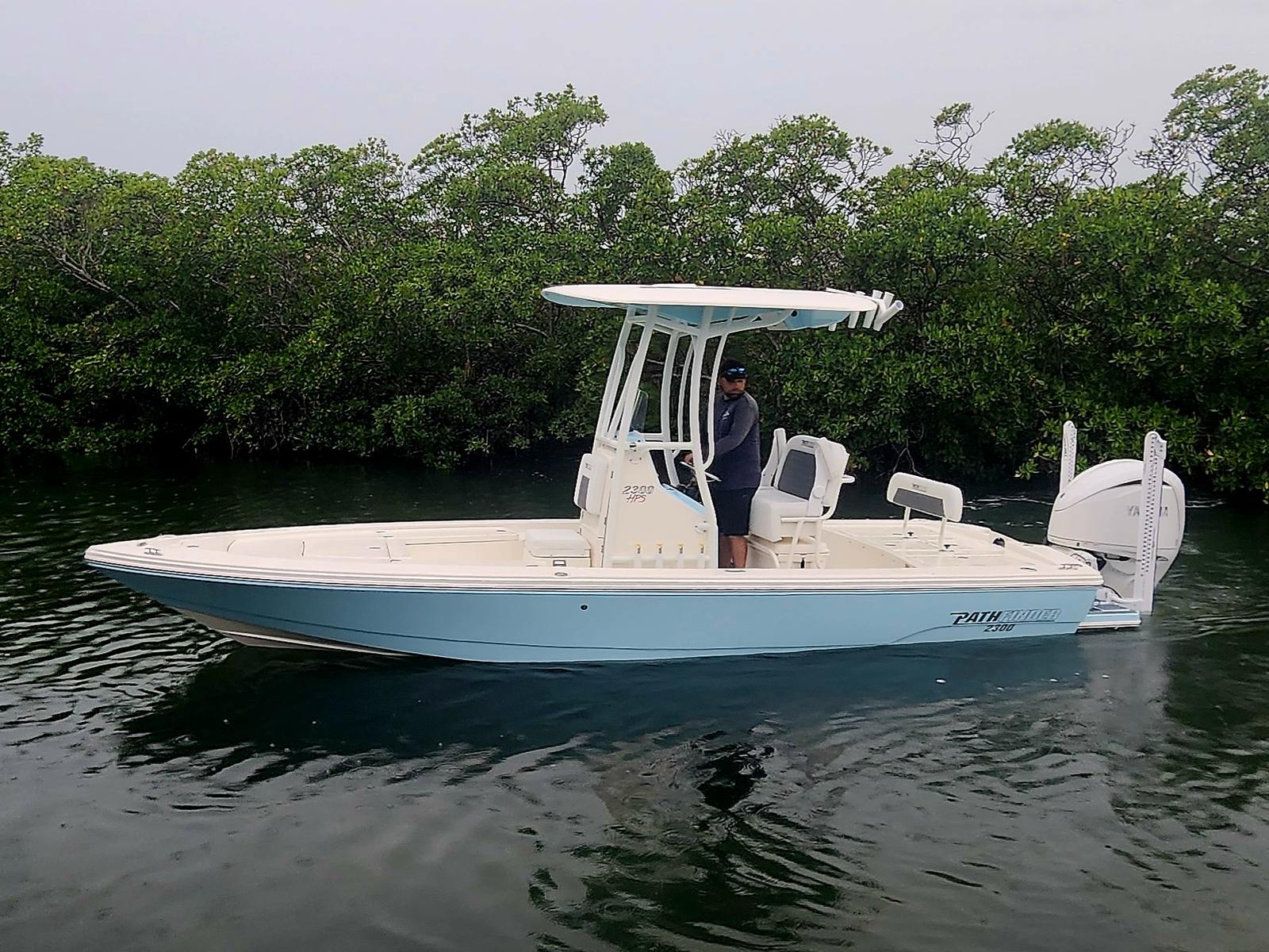 The 2026 Pathfinder 2300 HPS is a brand-new center console boat that measures an impressive 23.5 feet in length. This versatile vessel is engineered for both serious fishing and leisurely cruising, making it the perfect companion for a wide range of on-water activities. The sleek hull design, highlighted by a two-tone Atlantic Blue and Pure White color scheme, ensures you will turn heads at the dock and on the open water. As a new model, this Pathfinder boat for sale offers the latest advancements in marine technology and craftsmanship, promising years of reliable enjoyment.