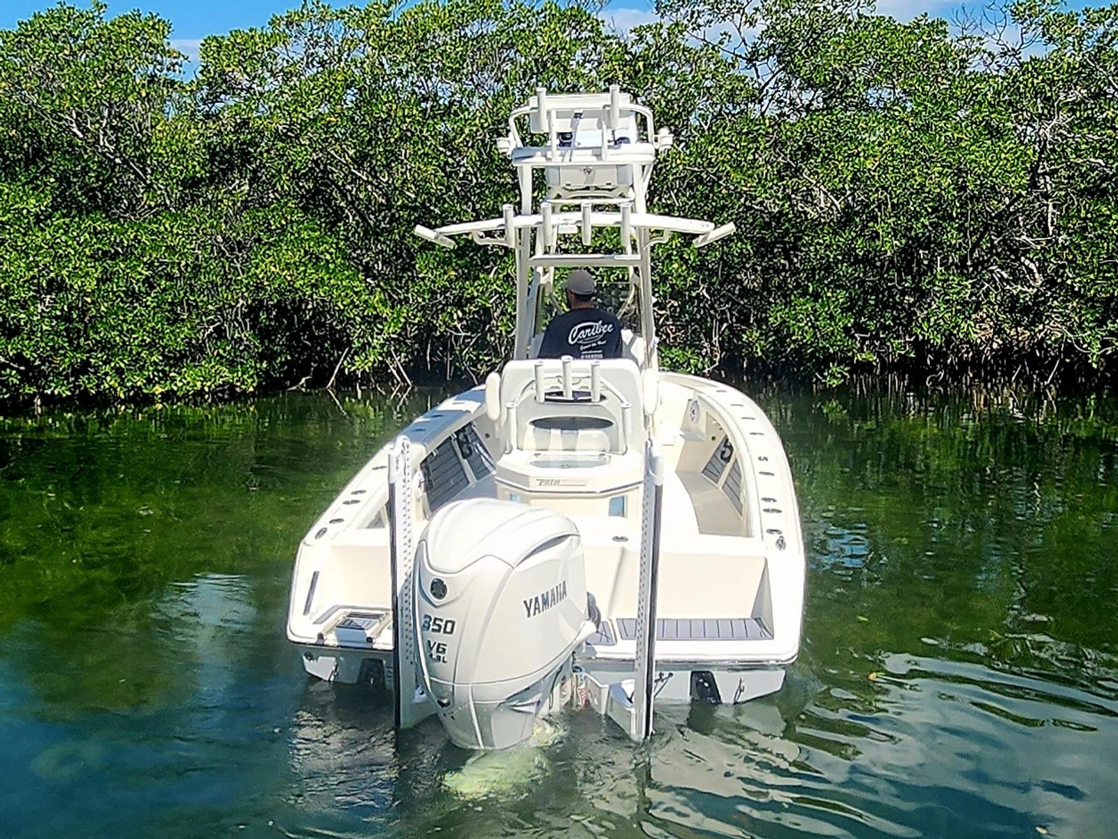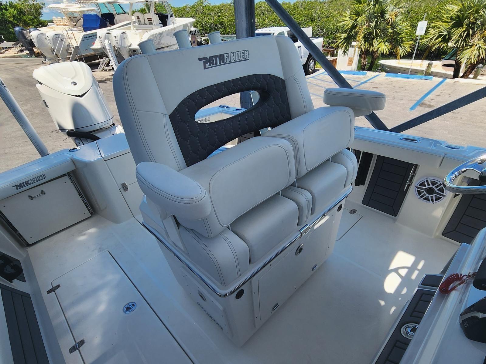 At the heart of the Pathfinder 2400 Open is a powerful Yamaha F350XSA2 White engine, delivering an impressive 350 horsepower for exhilarating acceleration and top-end speed. This single-engine setup is engineered for reliability and efficiency, ensuring you have the muscle to tackle offshore adventures or zip across inland waterways with ease. The advanced Helm Master EX with Integrated Digital Electric Steering (INT/DES) provides precise control and effortless handling, making docking and maneuvering a breeze. Whether you’re navigating tight marinas or open seas, the Pathfinder 2400 Open’s performance capabilities set it apart from other Center Console boats for sale.