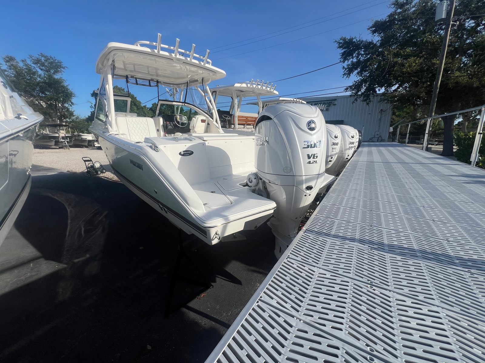 Owning the Pursuit DC 246 means embracing a lifestyle of fun, relaxation, and adventure. The spacious Dual Console layout provides ample seating for family and friends, making it perfect for social gatherings, sunbathing, or sharing a meal on the water. The comfortable white cockpit upholstery invites you to unwind, while the advanced lighting systems set the mood for any occasion. Whether you’re listening to music on the premium stereo or enjoying the glow of underwater lights during an evening cruise, every moment aboard this Pursuit boat is designed for enjoyment.The DC 246’s thoughtful features enhance comfort and convenience, allowing you to focus on making memories. The protective curtains and bow cover shield you from wind and spray, while the windshield wiper keeps your view clear. With easy access to rod holders and a powerful anchor windlass, you can seamlessly transition from cruising to fishing or relaxing at anchor.