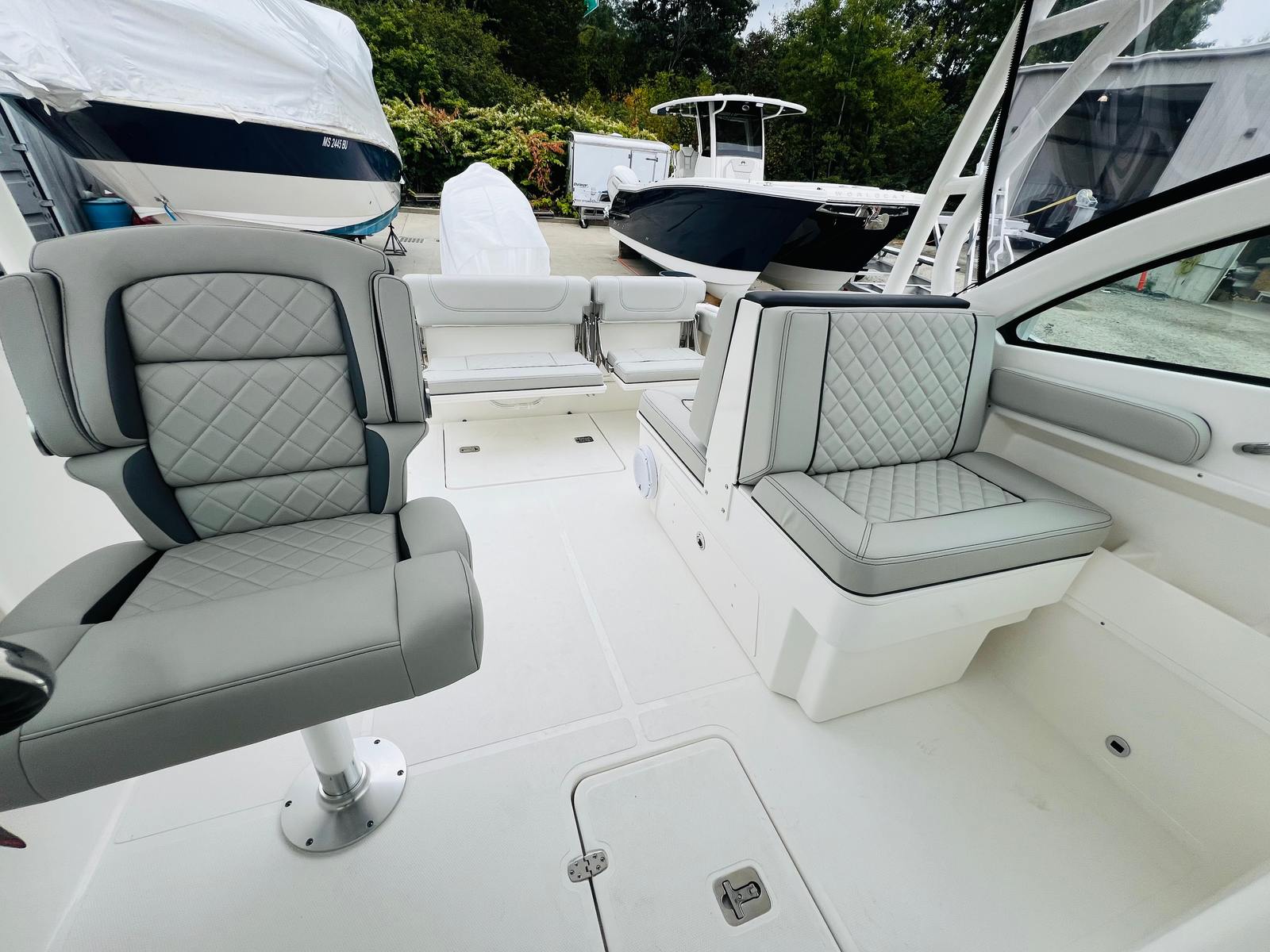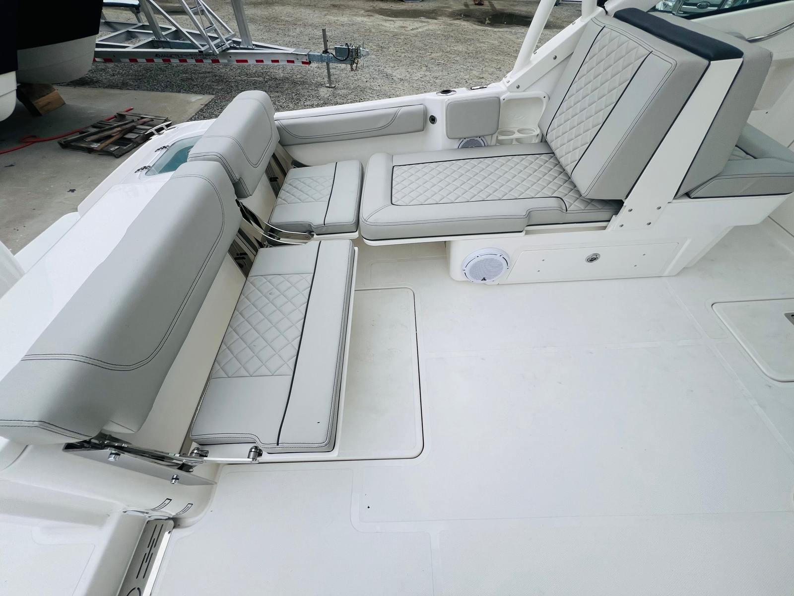 Practicality is at the core of the Pursuit DC 246’s design. The anchor windlass system with remote makes it easy to secure your boat in any location, whether you are stopping for a swim or anchoring overnight. The integrated storage solutions throughout the boat ensure that all your gear, from fishing tackle to water toys, is organized and easily accessible. The efficient Yamaha F300 engine not only delivers impressive performance but also offers excellent fuel efficiency, allowing you to spend more time on the water and less time at the fuel dock.Docking and maneuvering are made simple thanks to the advanced steering and control systems, giving you confidence in any situation. The durable construction and high-quality materials used throughout the boat ensure long-lasting reliability and low maintenance, so you can focus on enjoying your time on the water.