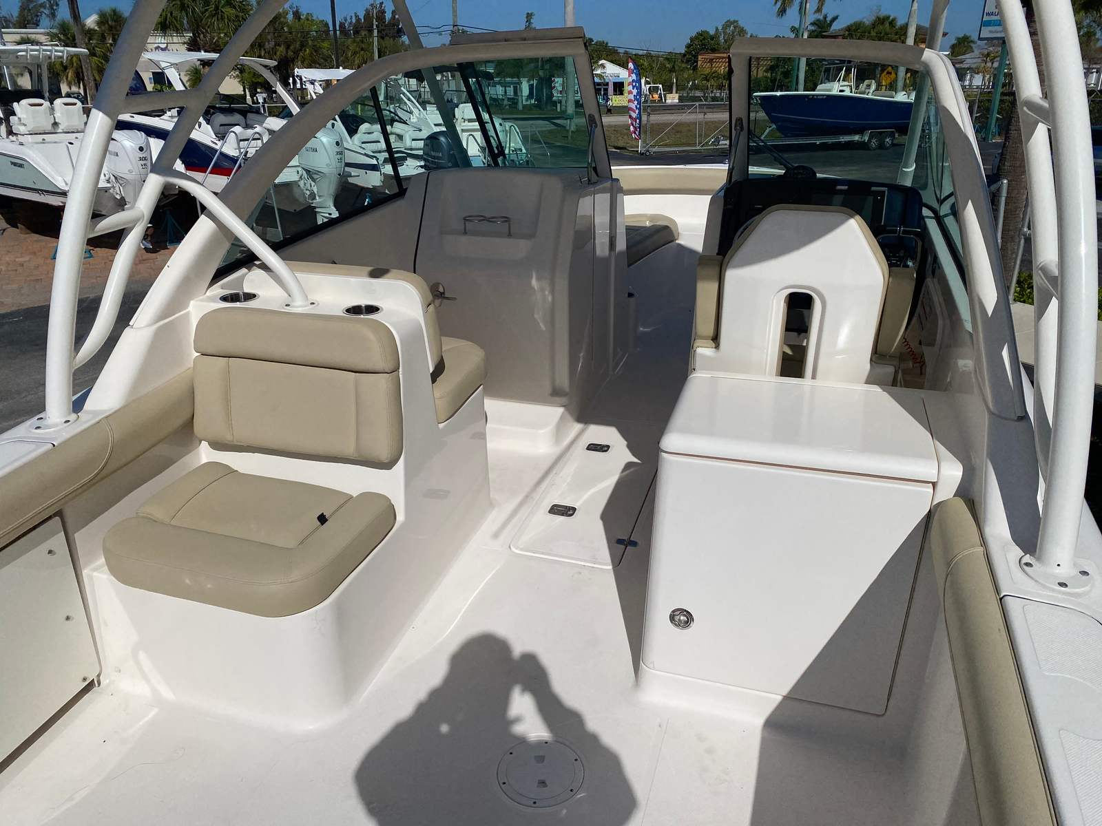 Powered by twin engines delivering a combined 400 horsepower, the Pursuit DC 265 offers impressive performance on the water. With 700 engine hours, these engines have proven their reliability and are ready for many more adventures. The dual engine setup provides excellent acceleration, responsive handling, and the power needed to tackle a variety of water conditions. Whether you are cruising along the coastline, heading out for a day of fishing, or enjoying water sports with family and friends, this dual console boat for sale delivers a smooth and exhilarating ride.