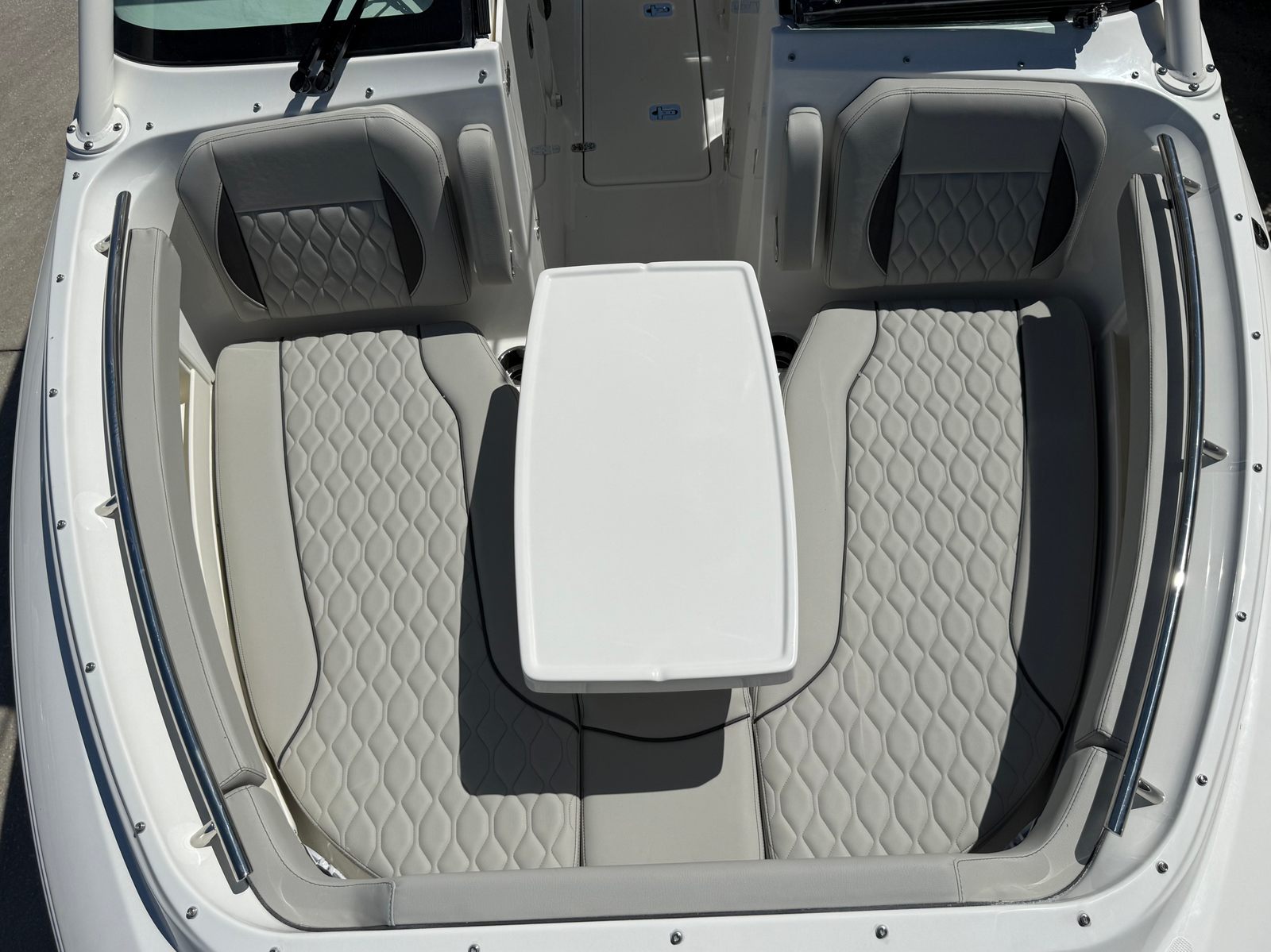 Power and reliability are at the heart of the Pursuit DC 266. Equipped with twin Yamaha F200 outboard engines, this Dual Console boat for sale boasts a combined 400 horsepower, providing exhilarating acceleration and smooth cruising. Whether you’re navigating coastal waters, heading offshore for a day of fishing, or simply enjoying a leisurely cruise, the DC 266 delivers responsive handling and impressive fuel efficiency. The twin-engine setup not only enhances performance but also offers peace of mind with added redundancy and maneuverability, making docking and tight turns a breeze.