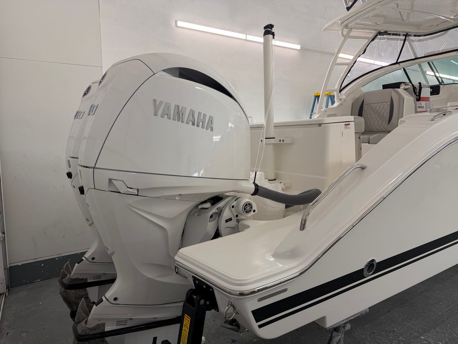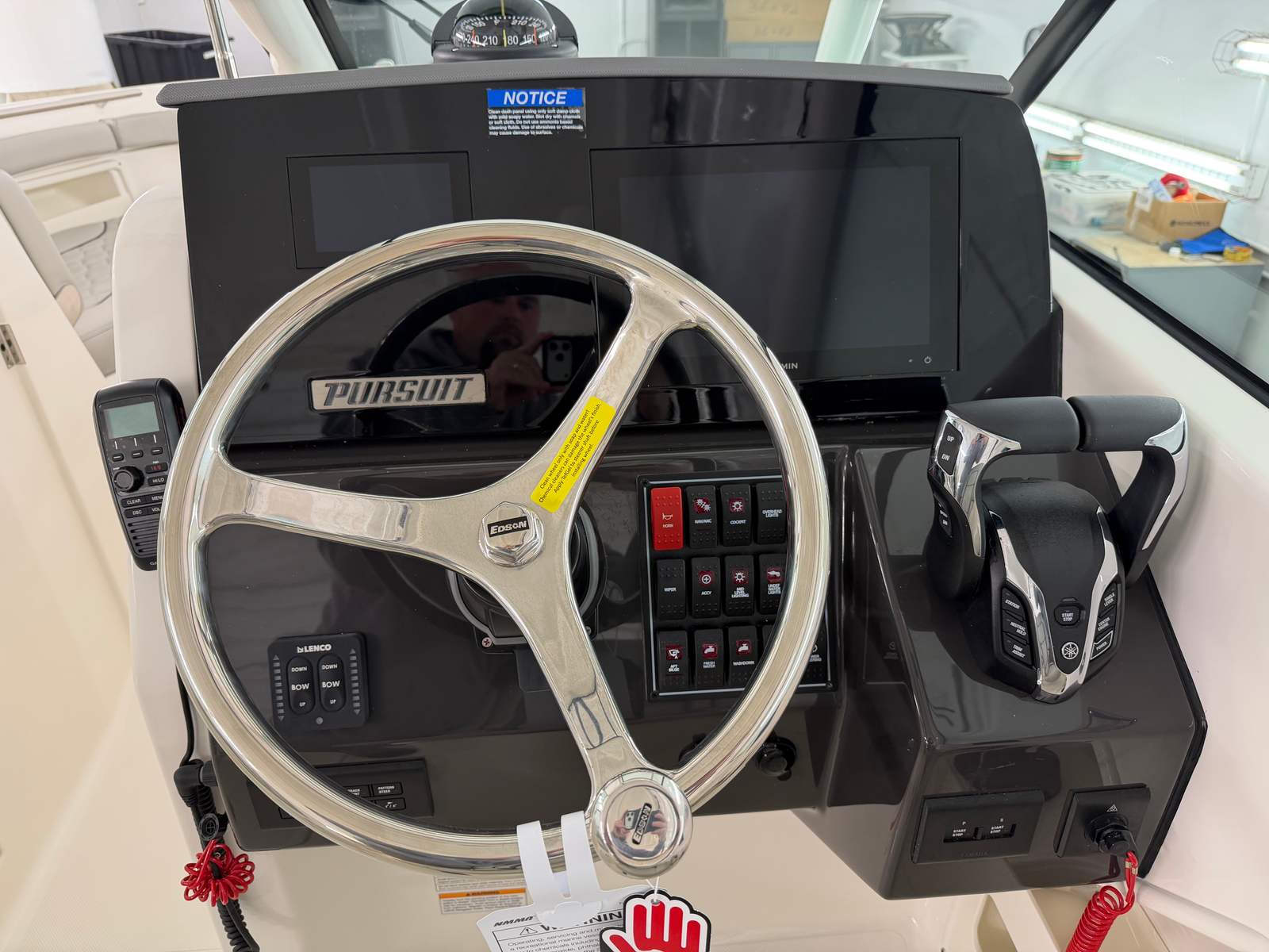 Owning the Pursuit DC 266 dual console boat means embracing a lifestyle of fun, relaxation, and adventure. The spacious layout provides comfortable seating for family and friends, ensuring everyone has room to unwind and enjoy the ride. The dual console design offers protection from wind and spray, making it ideal for cruising in a variety of conditions. Whether you’re hosting a sunset dinner on the bow table, casting lines from the rod holders, or soaking up the sun under the Mediterranean style sunshade, this Pursuit boat for sale delivers endless opportunities for recreation and leisure.The advanced Yamaha engine setup not only provides impressive speed and agility but also ensures fuel efficiency and reliability, so you can spend more time enjoying the water and less time worrying about maintenance. The intuitive controls and joystick maneuverability make docking and navigating tight spaces a breeze, reducing stress and increasing confidence for boaters of all skill levels.