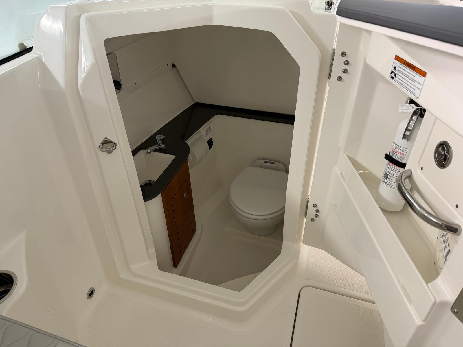 The Pursuit DC 266 is loaded with special features designed to enhance comfort, convenience, and enjoyment on the water. The multifunction display interface keeps you informed and in control, offering real-time data and seamless integration with your navigation and entertainment systems. The anchor windlass system with remote operation simplifies anchoring, allowing you to secure your position with the touch of a button. For those who love to soak up the sun, the aft cockpit Mediterranean style sunshade is stowable, providing flexible protection from the elements when you need it most.Entertaining guests is effortless with the fiberglass bow table, which can be mounted in both the bow and cockpit areas for versatile dining and socializing options. Anglers will appreciate the hardtop-mounted rod holders (four in total), offering convenient storage and easy access to fishing gear. Watersports enthusiasts can take advantage of the removable transom mount ski tow, perfect for towing skiers, wakeboarders, or inflatable toys. Every feature of the DC 266 is thoughtfully designed to maximize your enjoyment and make every outing memorable.
