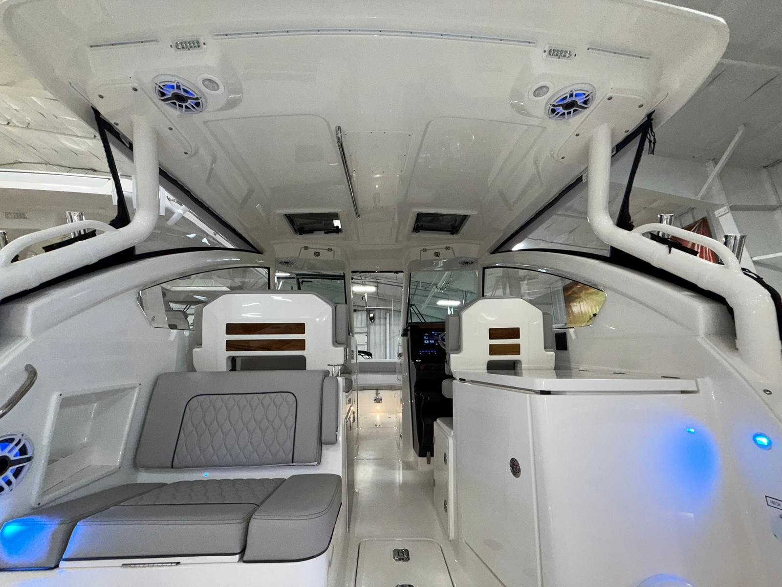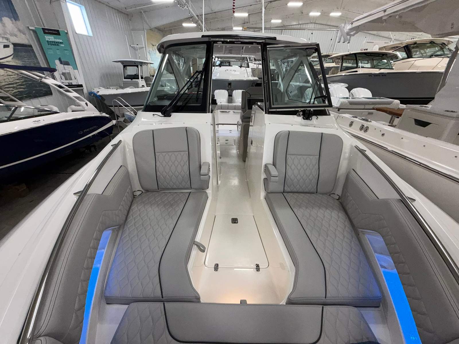 he Pursuit 326 DC is loaded with features that cater to both leisure and adventure. The spacious dual console layout provides separate helm and passenger areas, offering flexibility for different activities. The ergonomically designed helm station ensures easy access to controls and navigation equipment, enhancing the captain’s experience. Plush seating throughout the boat invites relaxation, while the expansive bow and cockpit areas are perfect for sunbathing, dining, or socializing. Storage solutions are thoughtfully integrated, allowing you to stow gear, water toys, and personal items securely. The Pursuit 326 DC also boasts advanced safety features, ensuring peace of mind for you and your guests during every voyage.