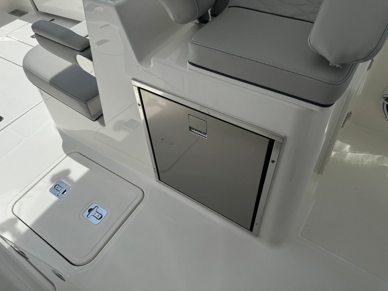 - 12v 2.3 cubic ft Refrigerator/Freezer, Stainless Steel (replaces Standard Tackle Storage) (Requires Dockside Power option)