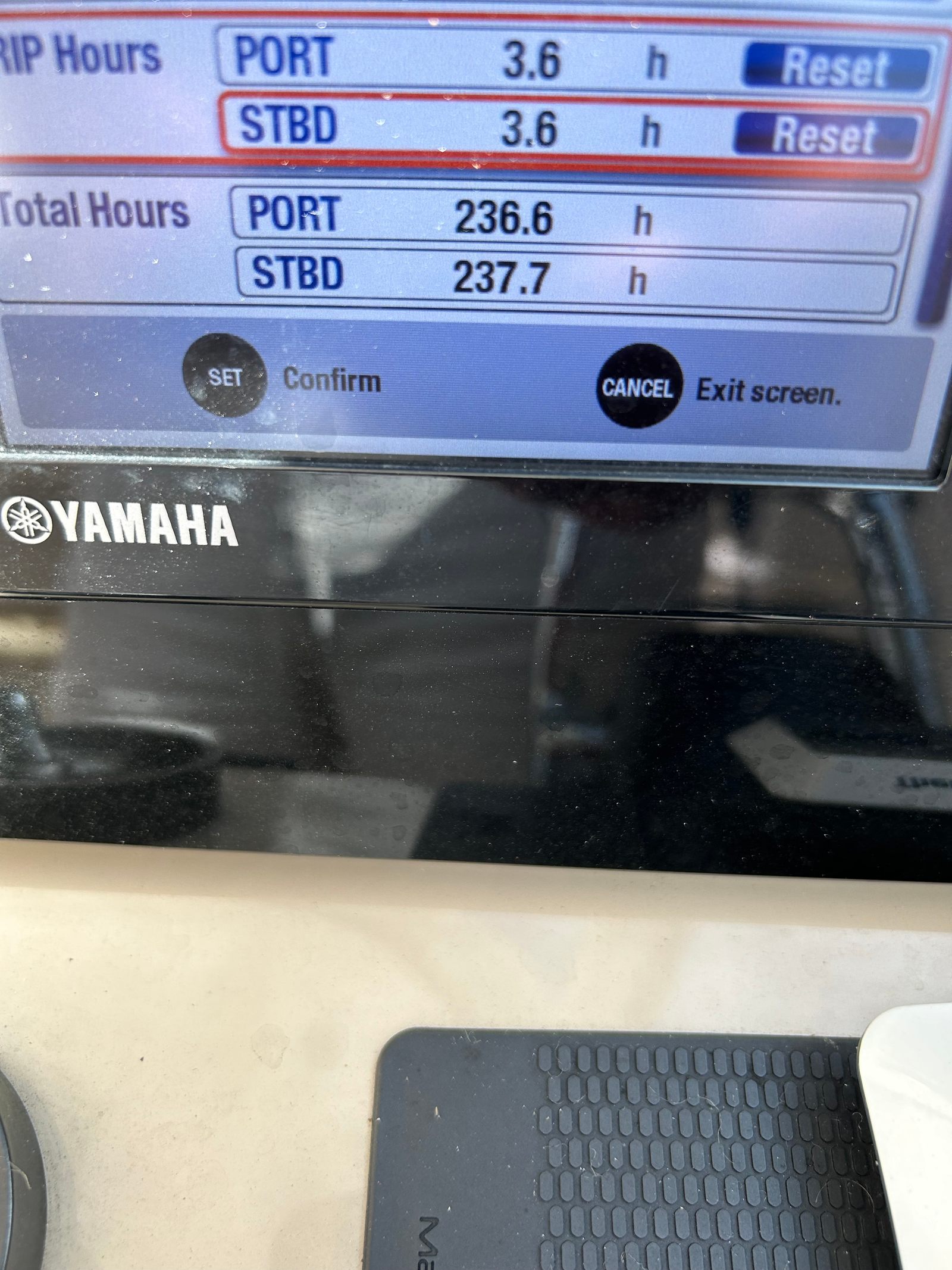 Powering this Pursuit DC 325 are twin engines, delivering a combined 600 horsepower for exhilarating performance and smooth cruising. Whether you’re navigating coastal waters or heading offshore for a day of adventure, the DC 325’s robust engine setup ensures you have the power and reliability you need. With only 237 engine hours, these engines offer plenty of life and dependable operation, giving you peace of mind as you explore new horizons. The dual engine configuration also enhances maneuverability and control, making docking and tight turns effortless.