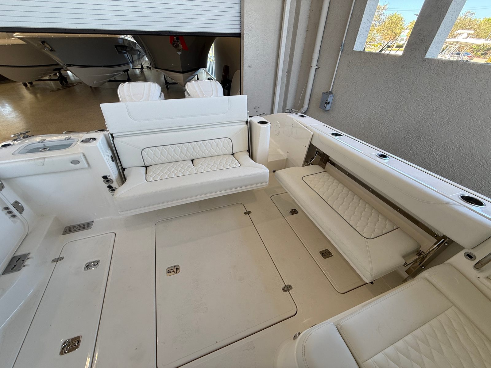 The versatility of the Pursuit DC 326 makes it perfect for a wide range of activities and adventures. For families, this dual console boat offers a safe and spacious environment for day trips, swimming, and water sports. The comfortable seating and thoughtful amenities make it easy to spend quality time together, whether you are cruising to a favorite destination or anchoring for a picnic on the water.Anglers will appreciate the stability and performance of the DC 326, as well as the ample storage for fishing gear and the convenience of the cockpit grill for preparing the day’s catch. For those who love to entertain, the stylish bridge deck teak table, air conditioning, and retractable sunshade create an inviting atmosphere for socializing and relaxation.Whether you are planning a luxury getaway, a weekend escape, or a spontaneous adventure, the Pursuit DC 326 adapts to your needs and exceeds expectations at every turn.