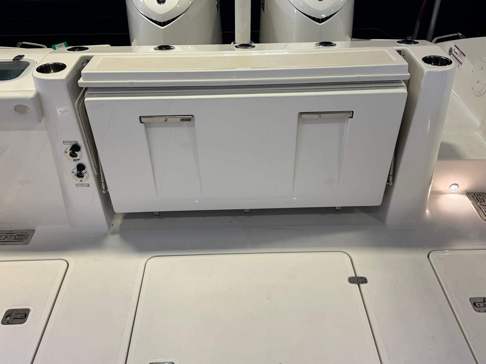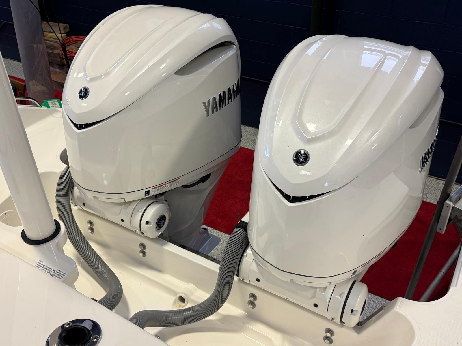 - Twin Yamaha® Digital F350 V6 Offshore (Pearlescent White) w/Integrated Digital Electric Steering (DES) and Helm Master® EX Digital Electronic Control (DEC) (does not include joystick control), Multifunction Display Interface and Manual Engine Flushing System