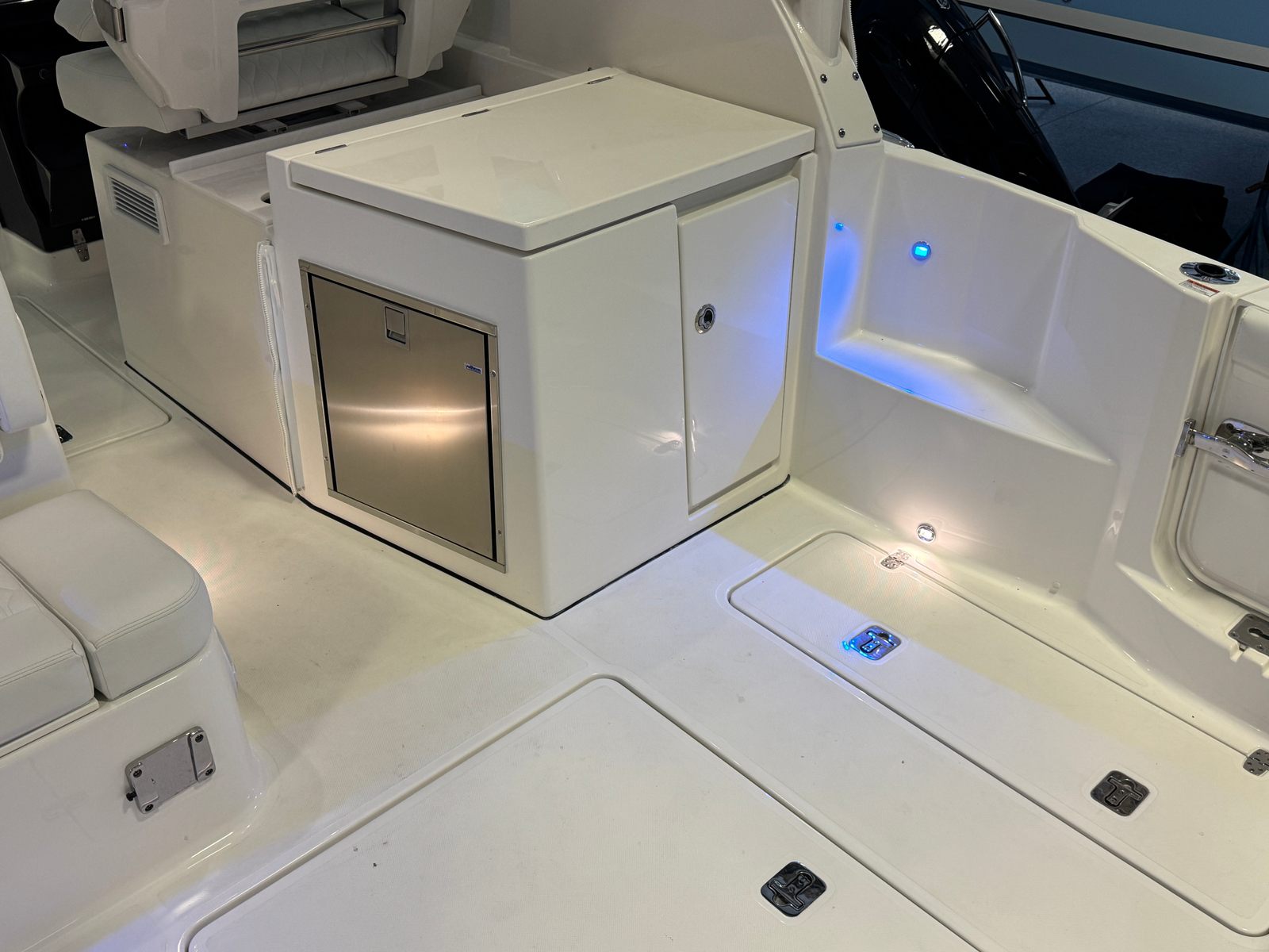 - 12V, 1.7 cu. ft. Cooler with Chill Plate under Aft Facing Seat