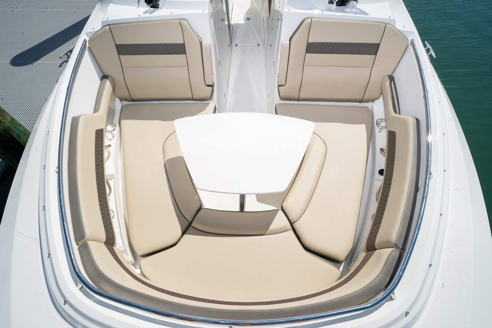 Owning the Pursuit 326 DC means embracing a lifestyle of fun, relaxation, and adventure. The dual console layout offers exceptional versatility, allowing you to seamlessly transition from fishing to cruising, water sports, or simply relaxing in the sun. The spacious cockpit and bow seating areas provide ample room for family and friends, making every outing a social event to remember. The Pursuit 326 DC’s thoughtful design ensures that every detail contributes to your comfort and enjoyment. The bridge deck teak table is perfect for sharing snacks or drinks, while the advanced Garmin electronics keep you connected and informed throughout your journey. The protective covers and curtains offer peace of mind, shielding you and your guests from sun, wind, or unexpected weather changes.