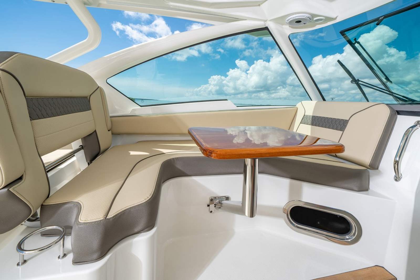 This dual console boat is as practical as it is luxurious. The Pursuit 326 DC’s generous storage solutions make it easy to stow gear, water toys, and personal items, keeping the deck uncluttered and organized. The boat’s manageable length and responsive handling simplify docking and maneuvering, even in tight marinas or busy waterways. Fuel efficiency is another hallmark of the Pursuit 326 DC, allowing you to spend more time on the water and less time at the pump. The combination of powerful twin engines and an optimized hull design ensures you get the most out of every gallon, whether you are cruising at a leisurely pace or powering up for an exciting ride.