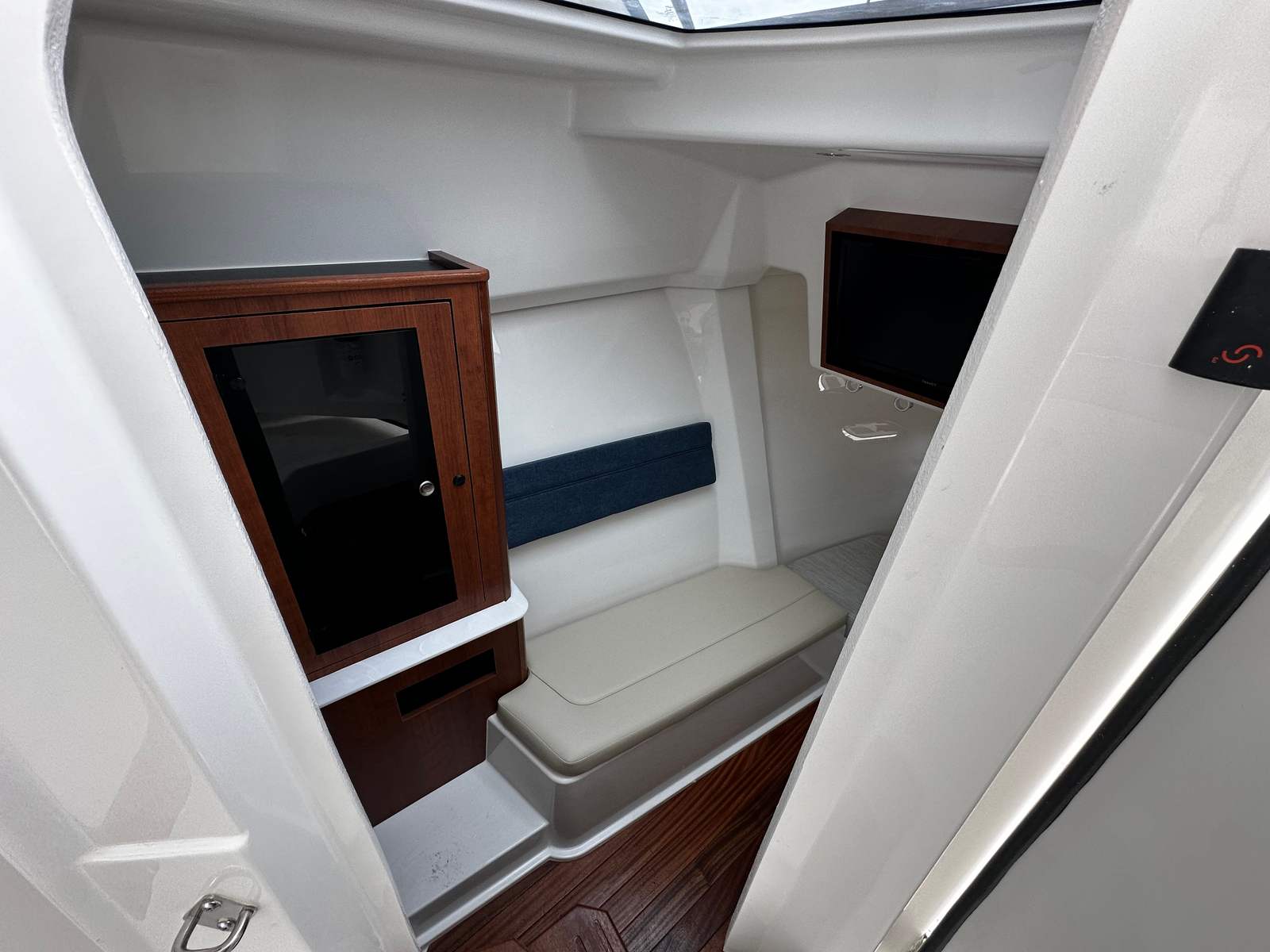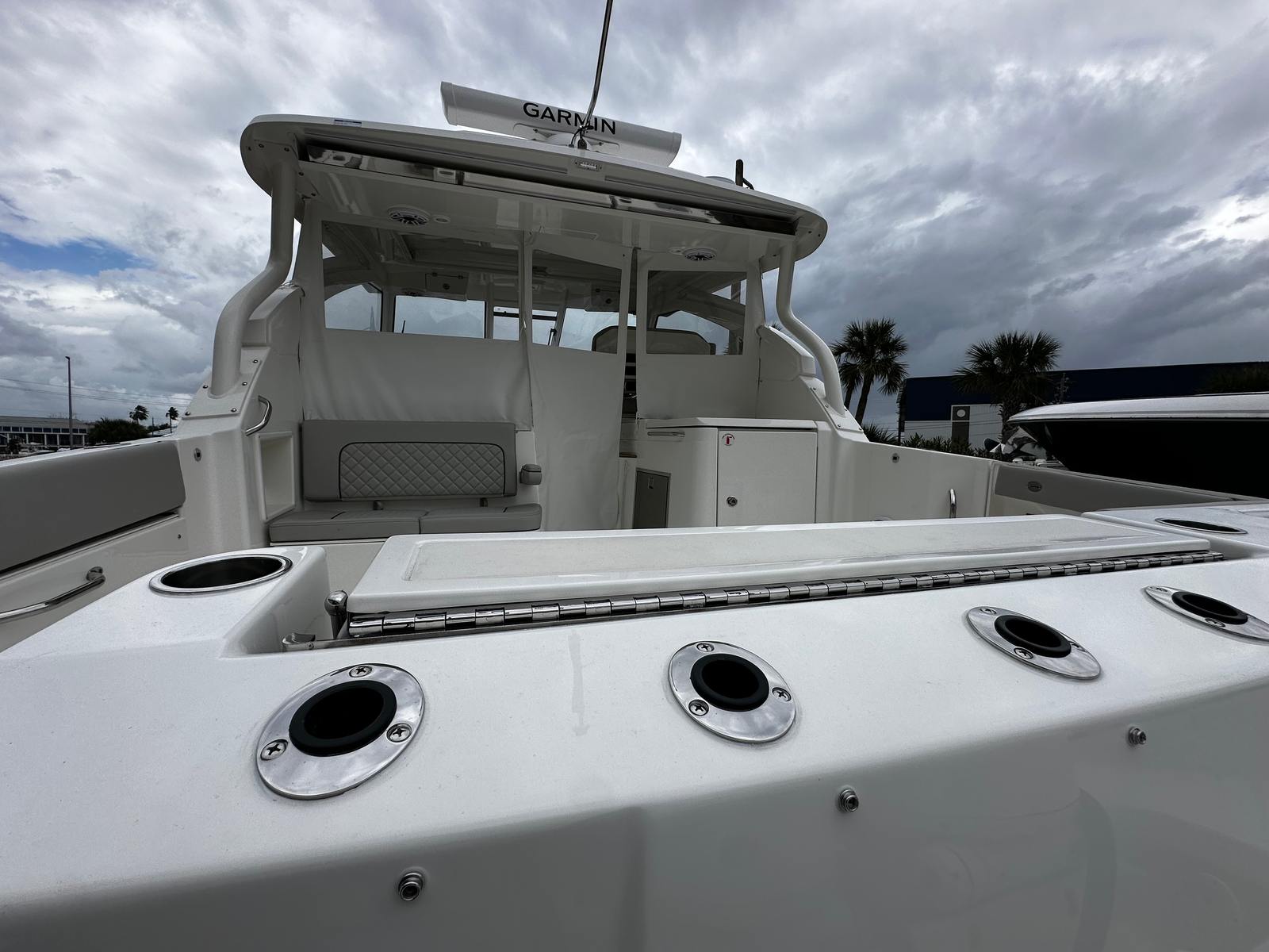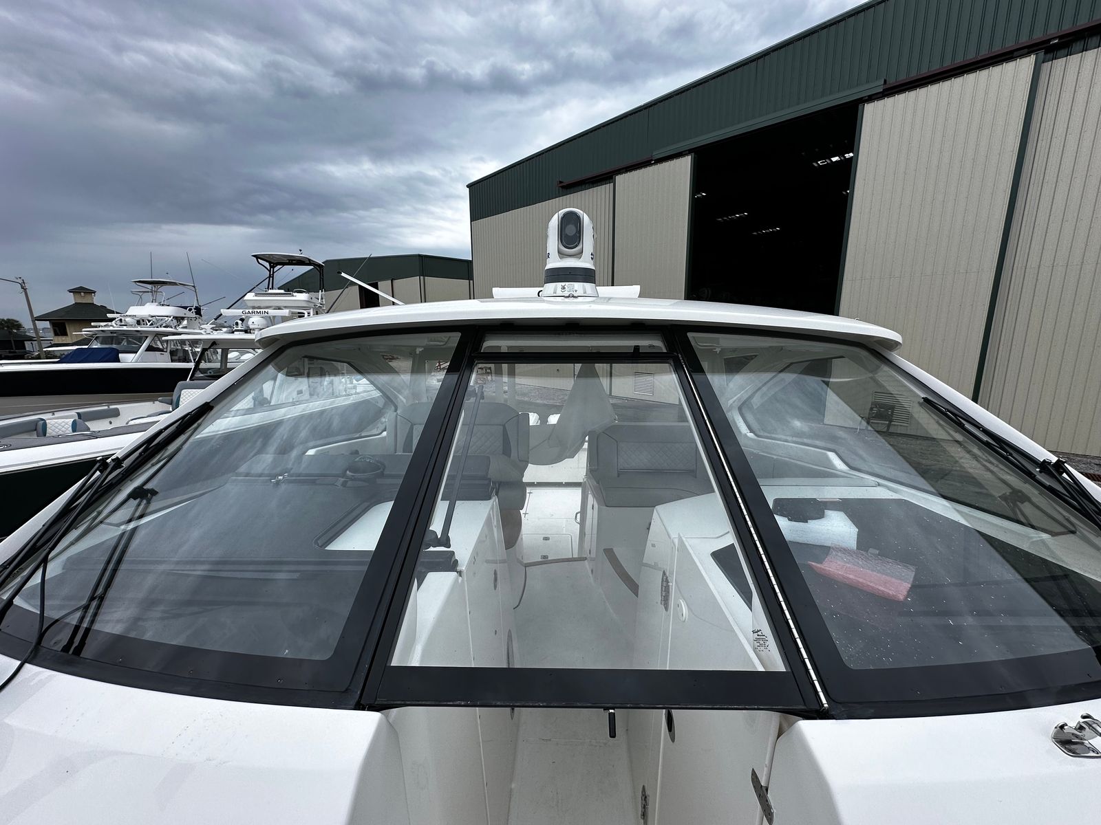 The Pursuit DC 365 is loaded with premium features that set it apart from other Dual Console boats for sale. The black bootstripe adds a touch of elegance to the exterior, while the four underwater lights create a captivating ambiance for evening cruises or dockside gatherings. Navigation and safety are enhanced by the Garmin Radar Open Array GMR Fantom 54, providing cutting-edge radar technology for superior situational awareness. The interior, finished in the serene Tranquil Sea color scheme, offers a relaxing and inviting atmosphere for you and your guests.For added comfort and protection, the DC 365 includes a white Stamoid aft curtain, shielding the cockpit from the elements while maintaining a clean, modern look. The Bow Mediterranean Style Sunshade provides ample shade for those sunny days, allowing you to relax in comfort at the bow. The cockpit air conditioning system ensures a cool and pleasant environment, even on the hottest days, making every outing enjoyable regardless of the weather.At the helm, the carbon finish adds a touch of high-tech sophistication, while the FLIR M332 Night Vision with image stabilization enhances safety and confidence during nighttime navigation. These features combine to create a Dual Console boat that is as functional as it is luxurious, making the Pursuit DC 365 a standout choice for discerning boaters.
