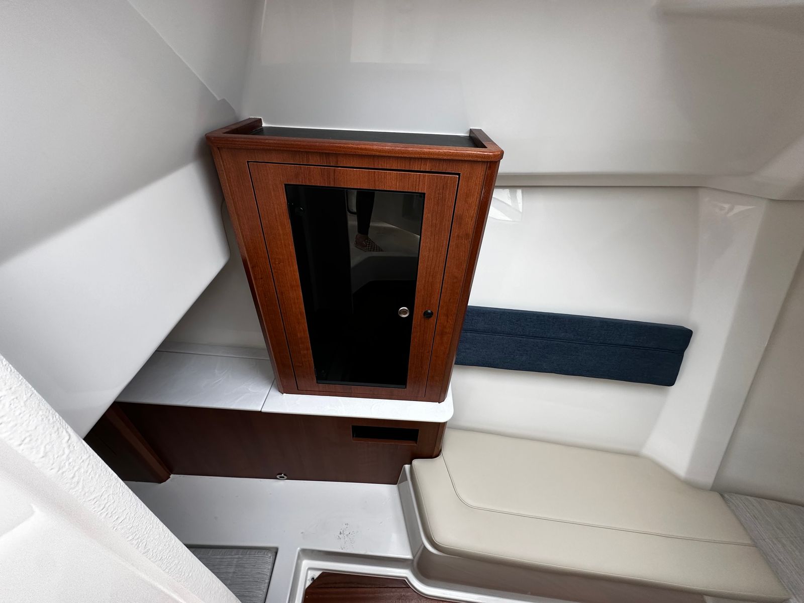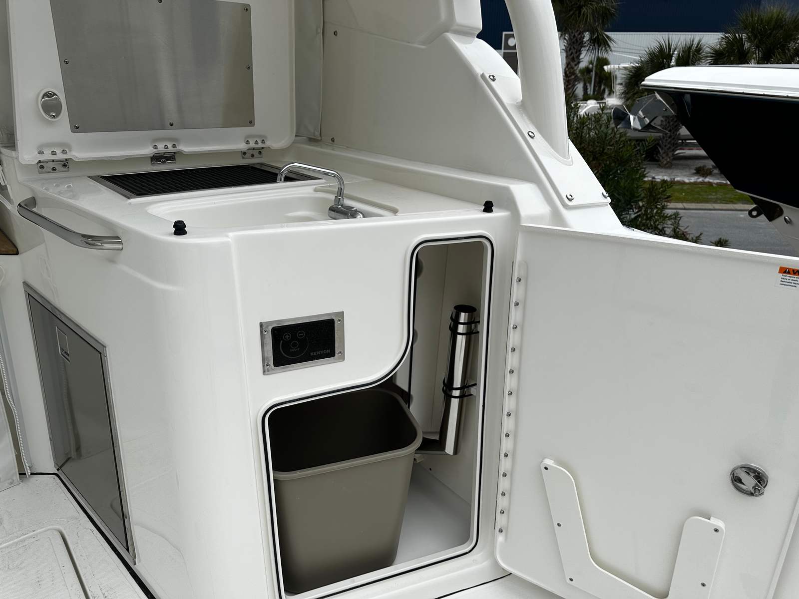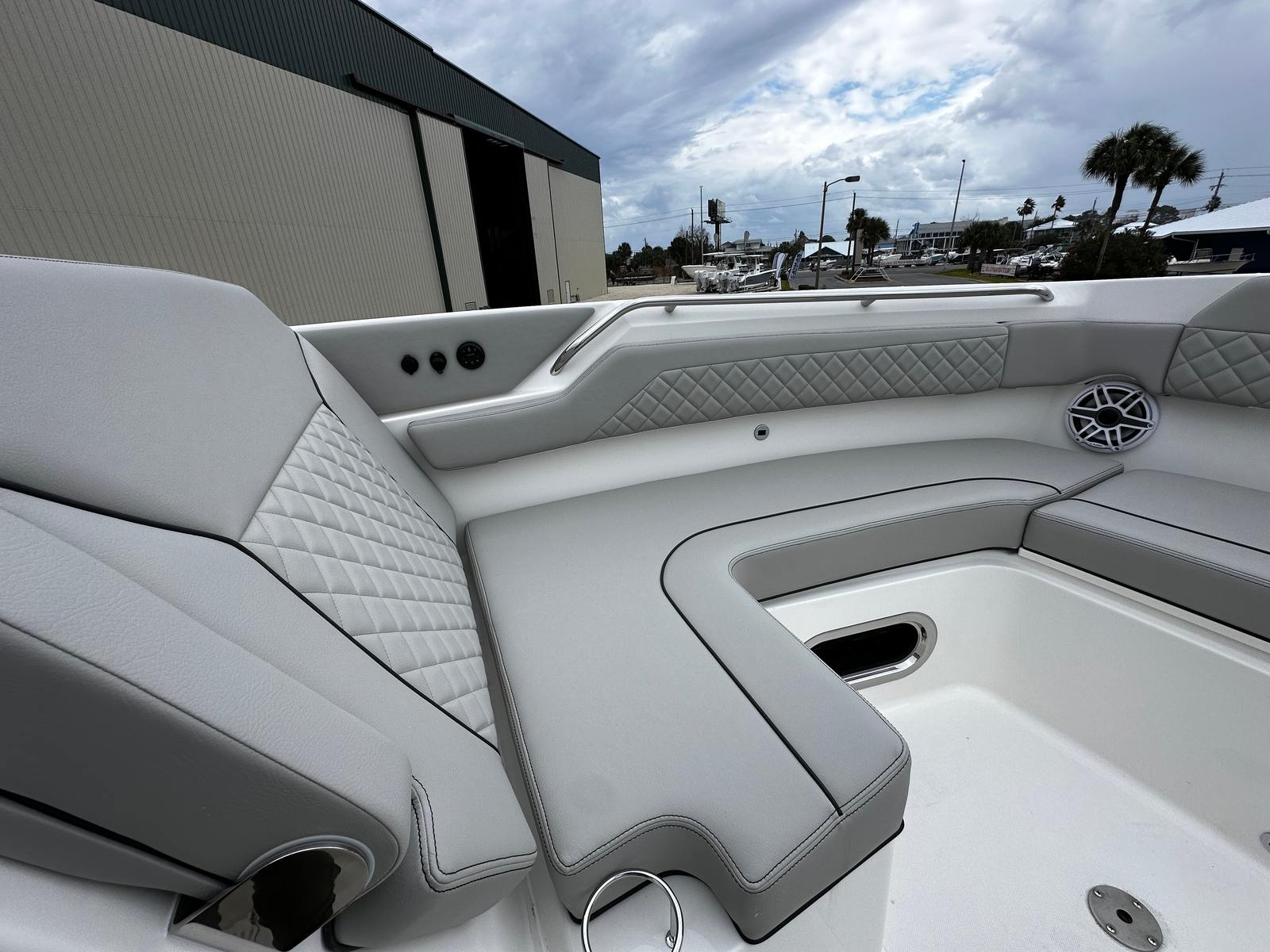 The Pursuit DC 365 is loaded with premium features that set it apart from other Dual Console boats for sale. The black bootstripe adds a touch of elegance to the exterior, while the four underwater lights create a captivating ambiance for evening cruises or dockside gatherings. Navigation and safety are enhanced by the Garmin Radar Open Array GMR Fantom 54, providing cutting-edge radar technology for superior situational awareness. The interior, finished in the serene Tranquil Sea color scheme, offers a relaxing and inviting atmosphere for you and your guests.For added comfort and protection, the DC 365 includes a white Stamoid aft curtain, shielding the cockpit from the elements while maintaining a clean, modern look. The Bow Mediterranean Style Sunshade provides ample shade for those sunny days, allowing you to relax in comfort at the bow. The cockpit air conditioning system ensures a cool and pleasant environment, even on the hottest days, making every outing enjoyable regardless of the weather.At the helm, the carbon finish adds a touch of high-tech sophistication, while the FLIR M332 Night Vision with image stabilization enhances safety and confidence during nighttime navigation. These features combine to create a Dual Console boat that is as functional as it is luxurious, making the Pursuit DC 365 a standout choice for discerning boaters.