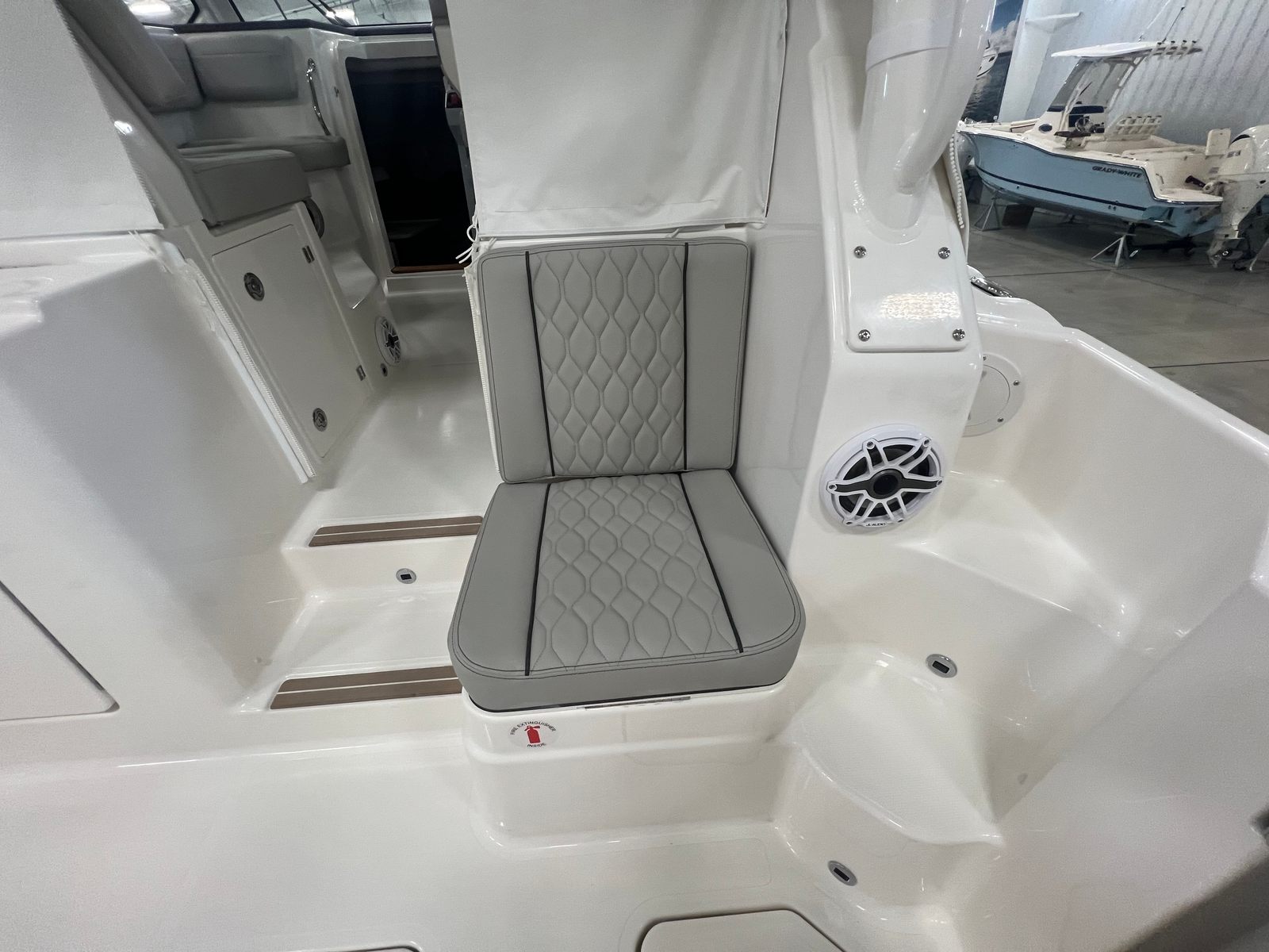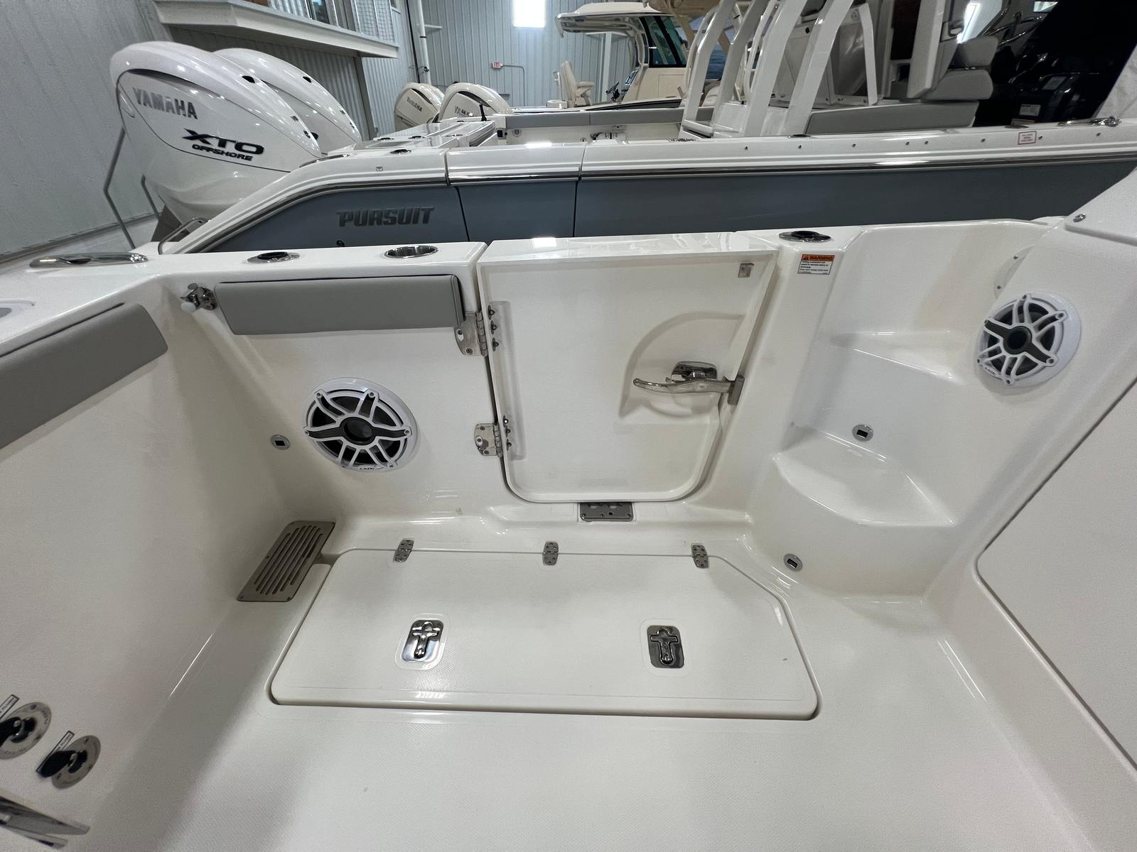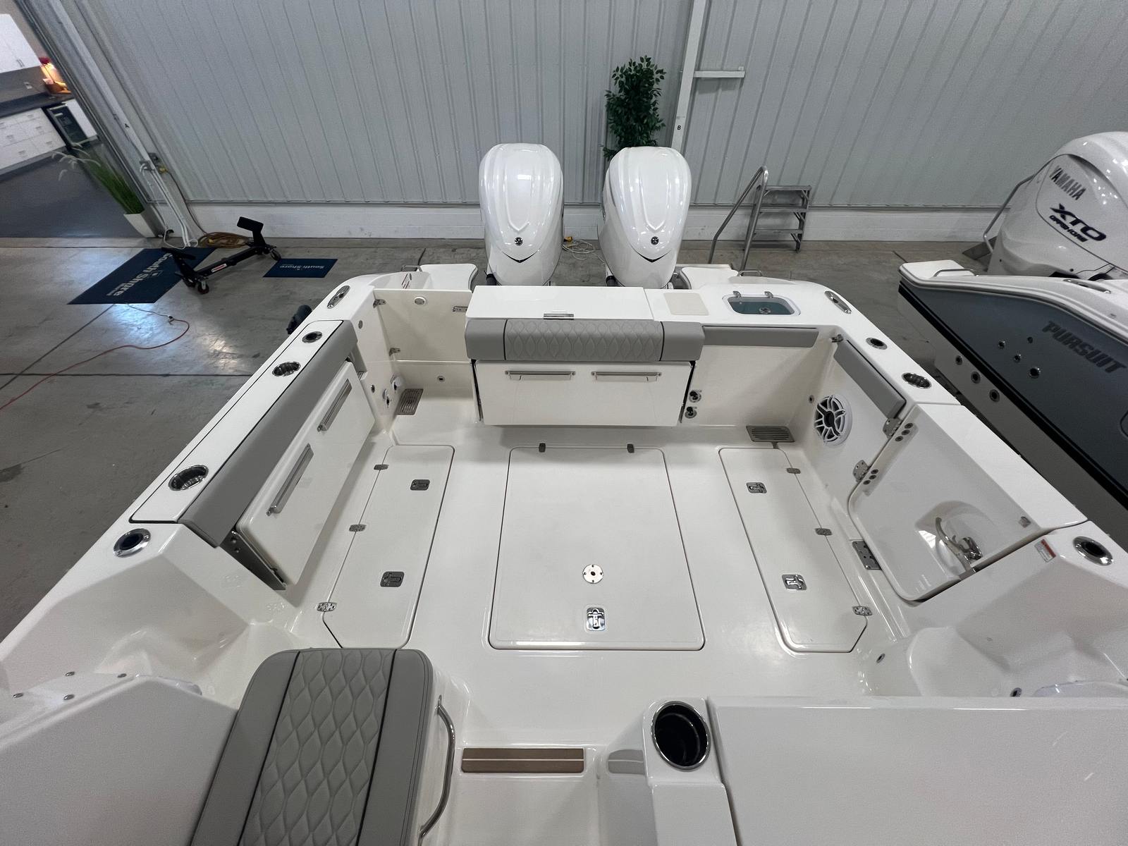 Practicality is at the heart of the Pursuit 325 OS. The dedicated storage solutions for tables and seating ensure that the deck remains clutter-free, making it easy to transition from cruising to entertaining. The folding gunwale seat provides additional seating when needed and can be stowed away to maximize deck space. The integrated electronics and navigation enhancements, such as the GMS 10 Expander for Garmin options, offer peace of mind and convenience for longer journeys or unfamiliar waters.Docking and maneuvering are made simple thanks to the boat's agile design and responsive controls. The efficient twin-engine setup not only delivers impressive power but also contributes to fuel efficiency, allowing you to spend more time on the water and less time at the fuel dock. The Pursuit 325 OS is built for easy maintenance and long-lasting performance, ensuring that your investment continues to deliver value and enjoyment for years to come.