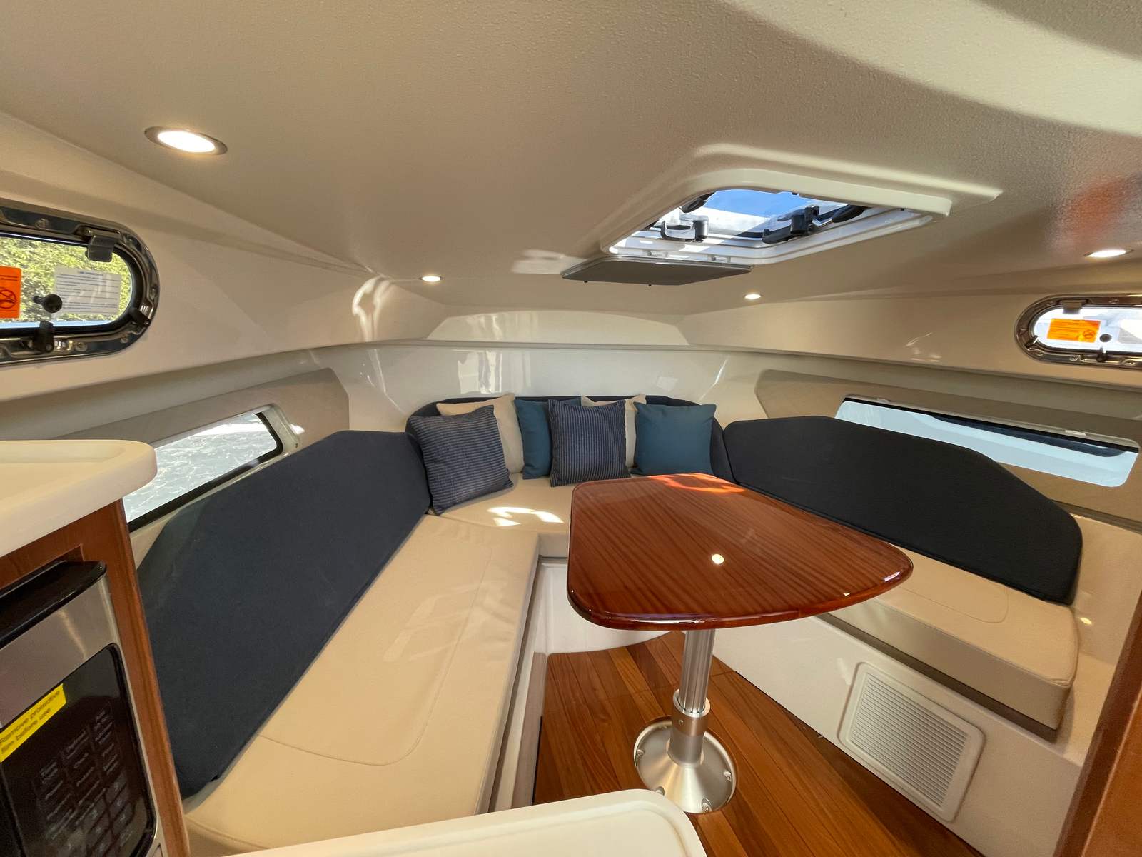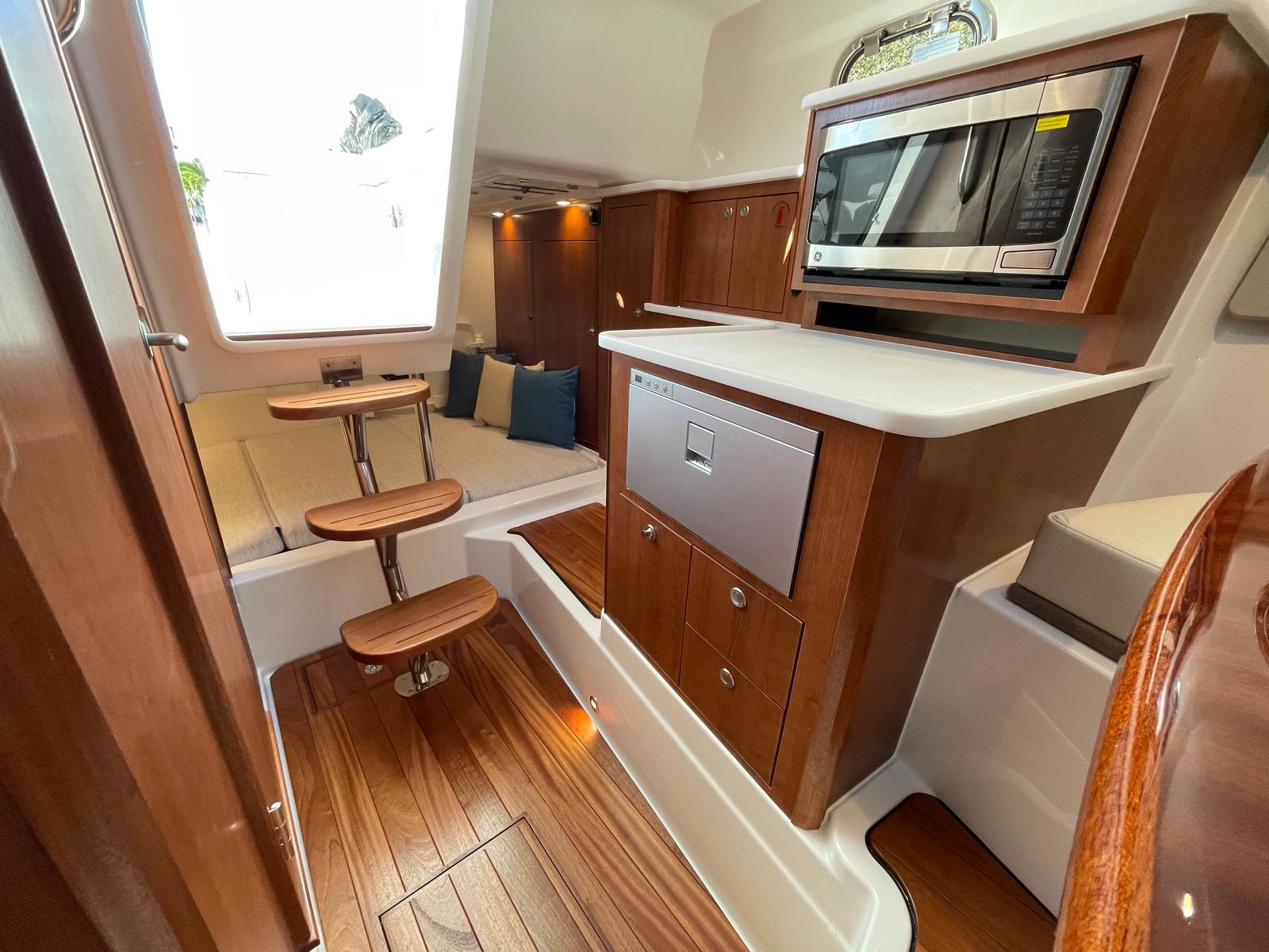 Owning the Pursuit OS 325 means embracing a lifestyle of fun, relaxation, and adventure. This cruiser boat for sale is designed to bring people together, offering plenty of space for socializing, dining, and enjoying the water. The plush seating and upgraded upholstery invite you to unwind in comfort, while the climate-controlled cabin ensures everyone stays cool and refreshed. The SeaKeeper Ride 600 stabilizer allows you and your guests to move about the boat with ease, even when the water gets lively.The OS 325’s advanced maneuverability features, including the Yamaha Joystick Control, make it easy for boaters of all experience levels to dock and navigate with confidence. This user-friendly technology reduces stress and enhances safety, so you can focus on making the most of your time on the water. With reliable power from the generator and efficient air conditioning, overnight stays and longer excursions become a true pleasure.