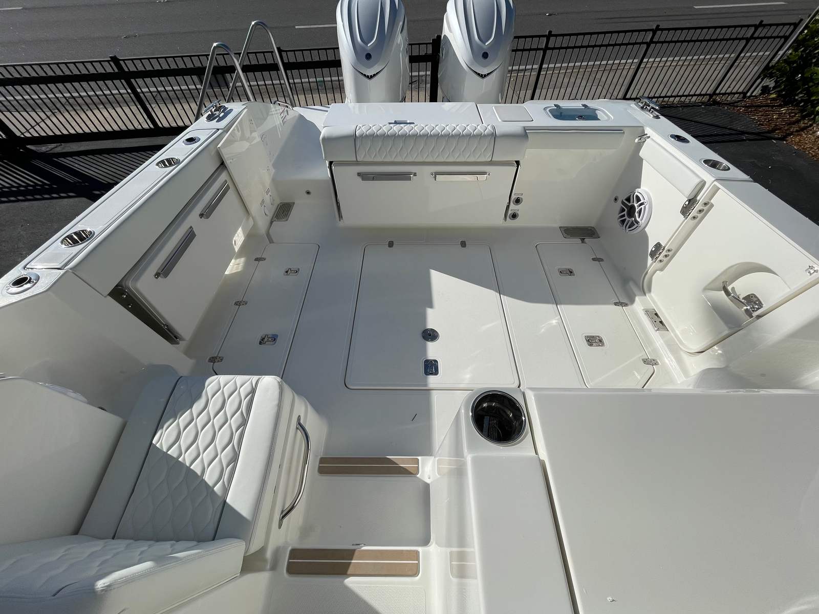 At the heart of the Pursuit OS 325’s exhilarating performance are twin Yamaha F350 engines, delivering a combined 700 horsepower. This powerhouse setup ensures smooth acceleration, impressive top speeds, and reliable cruising capabilities, making every journey as thrilling as it is comfortable. The inclusion of Yamaha Joystick Control with full maneuverability takes the stress out of docking and tight navigation, allowing you to handle the boat with precision and confidence. Whether you are navigating busy harbors or exploring open waters, the OS 325’s advanced propulsion system guarantees a responsive and enjoyable ride.