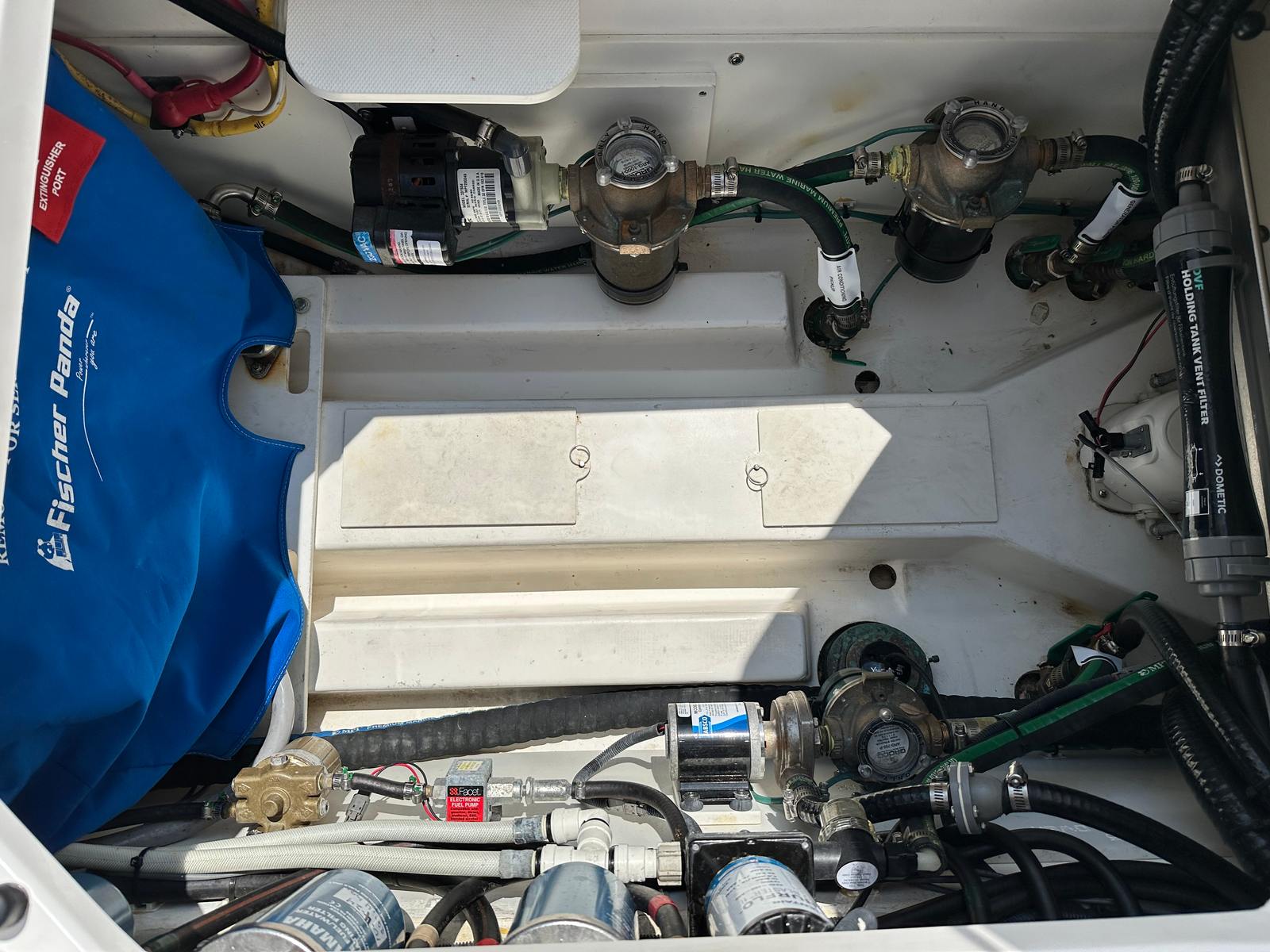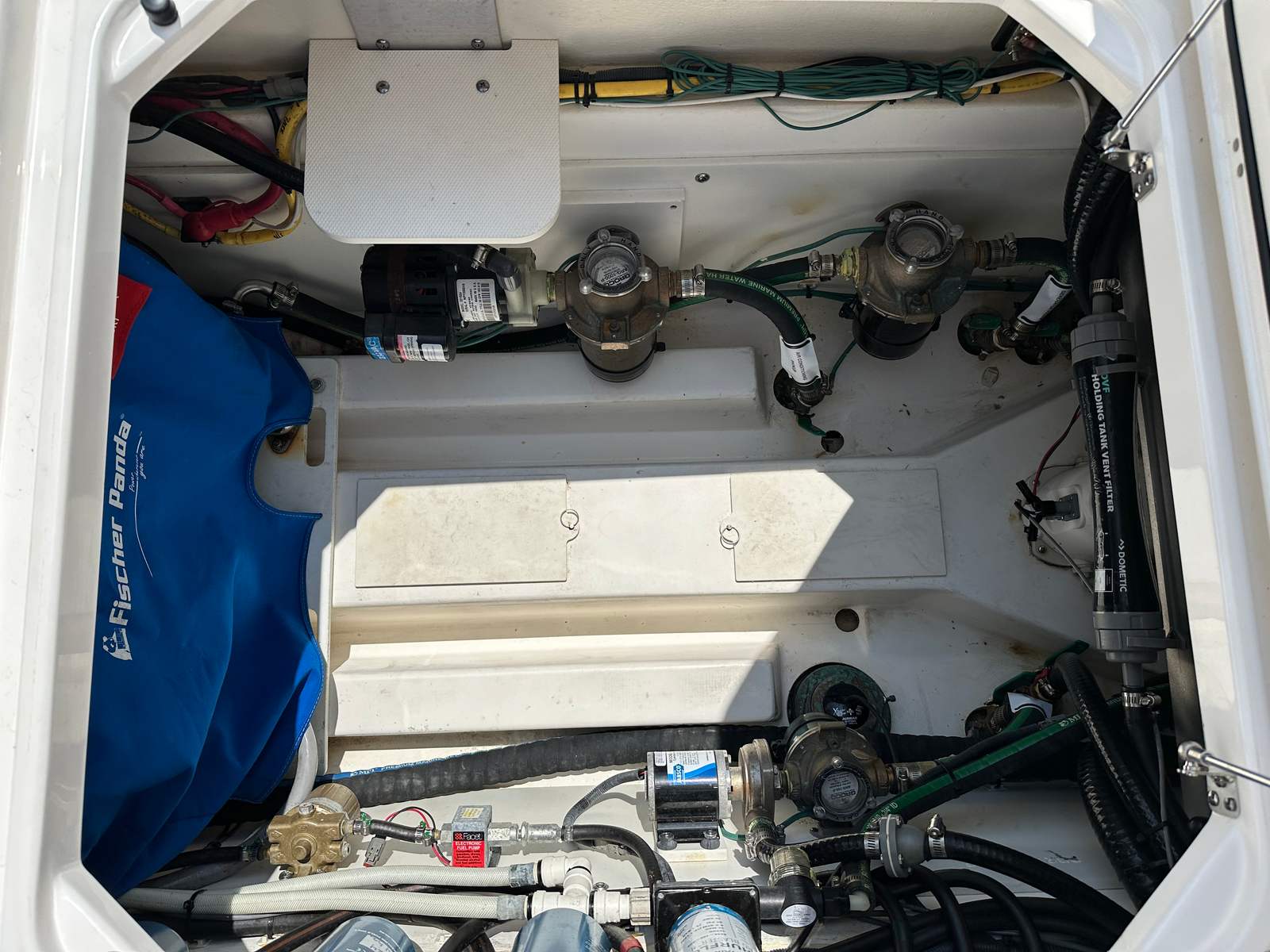 Power and precision define the performance of the Pursuit 355 OS. Equipped with three robust engines delivering a combined 900 horsepower, this cruiser is engineered for exhilarating speed and smooth handling. The triple-engine setup ensures reliable power, whether you are cruising at a leisurely pace or accelerating to reach your favorite destinations quickly. With 350 engine hours, these engines have been well-maintained and are primed for many more seasons of enjoyment. The Pursuit 355 OS offers a responsive ride, making it easy to navigate through various water conditions while providing the confidence and control that experienced boaters appreciate.