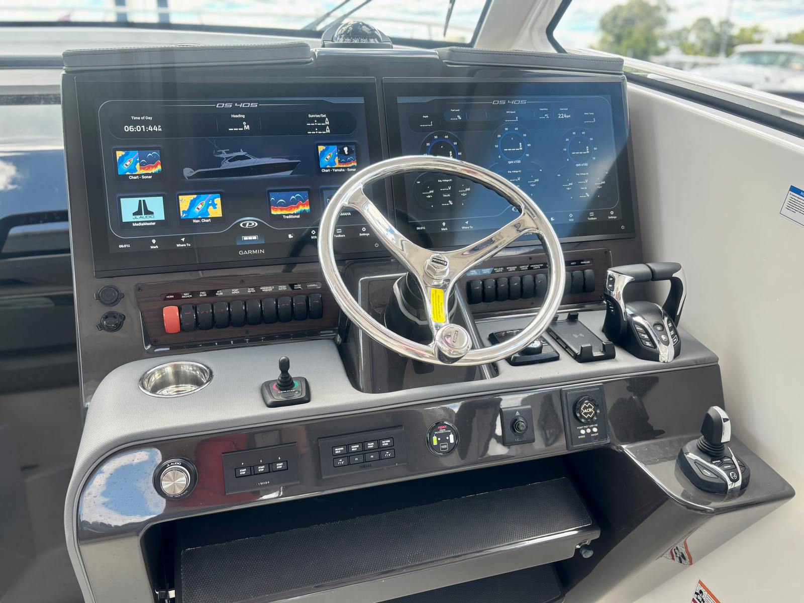 - Integrated Electric Steering (DES), Helm Master® EX Digital Electronic Control (DEC) and Yamaha® Joystick Control with Full Maneuverability (Set PointTM and Autopilot), Multifunction Display Interface, Manual Engine Flushing System