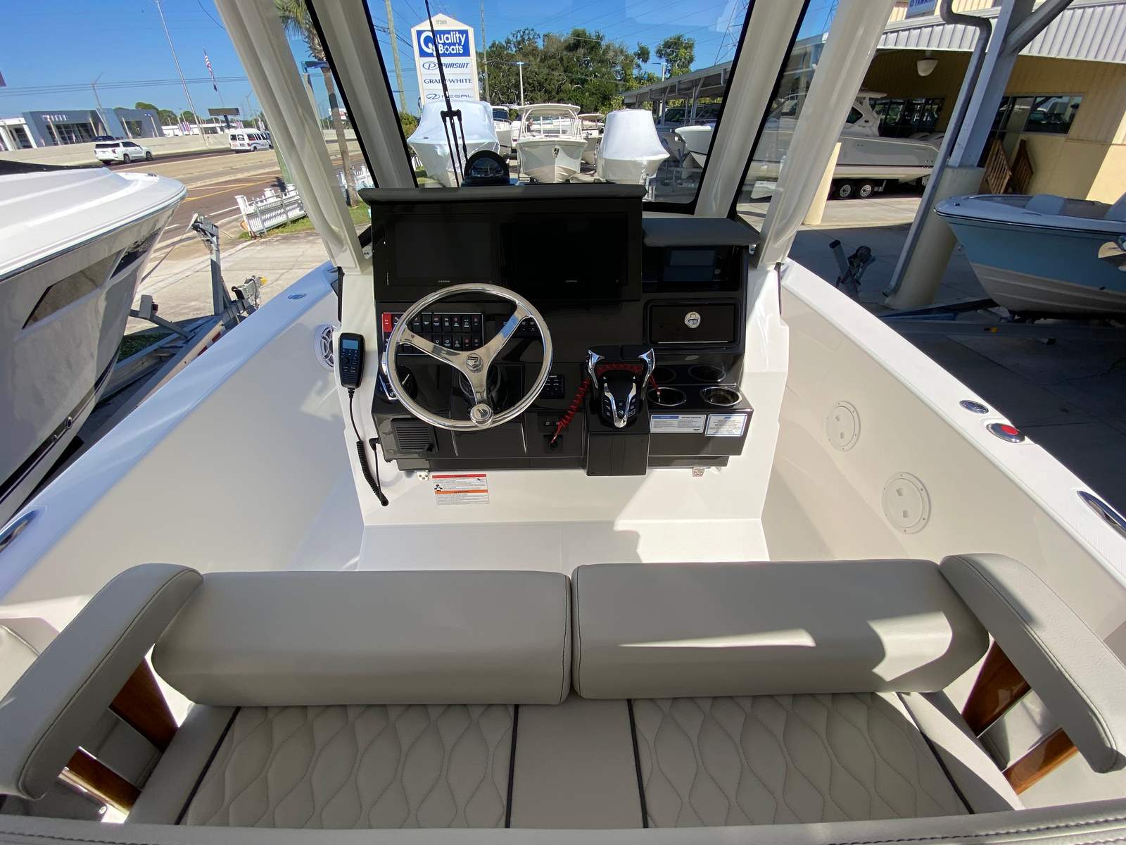The Pursuit S 288 is as practical as it is stylish. The center console design provides excellent visibility and easy access to all areas of the boat, making it ideal for both novice and experienced boaters. The joystick control system simplifies docking, even in challenging conditions, while the side door boarding ladder ensures that everyone can get on and off the boat safely.Storage solutions are thoughtfully integrated throughout the boat, including dedicated space for the cockpit table and sunshade. The efficient layout allows you to bring along all the gear and supplies you need for a day on the water without sacrificing comfort or mobility. The combination of performance, maneuverability, and user-friendly features makes the S 288 a smart choice for anyone seeking a versatile and reliable center console boat for sale.