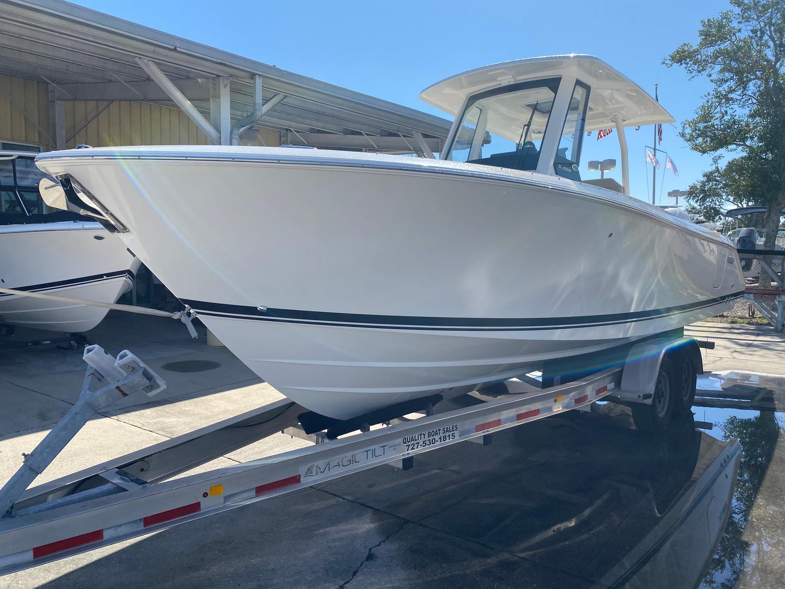 The 2026 Pursuit S 288 is a standout center console boat for sale, offering a perfect blend of performance, luxury, and versatility. With twin Yamaha F300 engines, advanced joystick control, and a host of premium features—including a fresh white hull, black bootstripe, carbon helm, fiberglass bow/cockpit table with storage, Mediterranean style sunshade, hardtop-mounted rod holders, blue LED accent lights, and a stainless steel side door boarding ladder—this Pursuit boat for sale is designed to deliver unforgettable experiences on the water.Whether you are seeking thrilling adventures, relaxing getaways, or memorable moments with loved ones, the Pursuit S 288 is the ideal choice. Discover the joy of owning a new center console boat that truly has it all. Contact the dealer today to learn more about this exceptional vessel and start your next boating adventure.