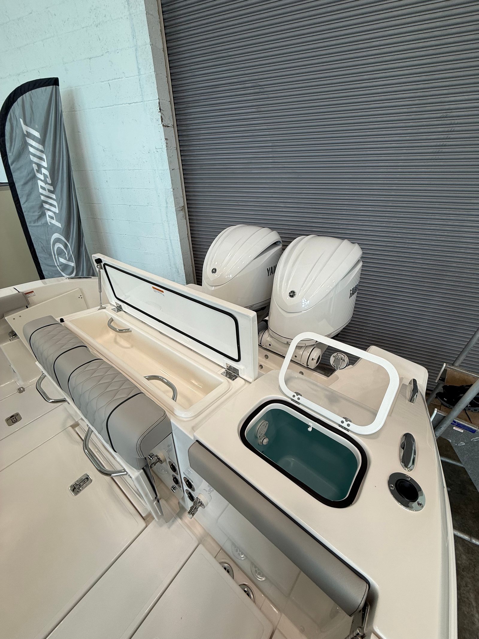 Practicality is at the heart of the Pursuit S 288’s design. The center console layout provides excellent visibility and maneuverability, making docking and navigating tight spaces a breeze. The efficient twin Yamaha engines are designed for optimal fuel economy, allowing you to spend more time on the water and less time refueling.Storage solutions are seamlessly integrated throughout the boat, ensuring that all your gear and essentials are easily accessible yet out of the way. The hardtop rod holders keep fishing rods secure and organized, while the sunshade and sunpad options offer flexible spaces for relaxation or gear storage as needed.The Pursuit S 288 is also easy to maintain, with durable materials and finishes that stand up to the rigors of saltwater and sun exposure. The helm seat cover protects your investment, keeping the seating area looking fresh and new for years to come.