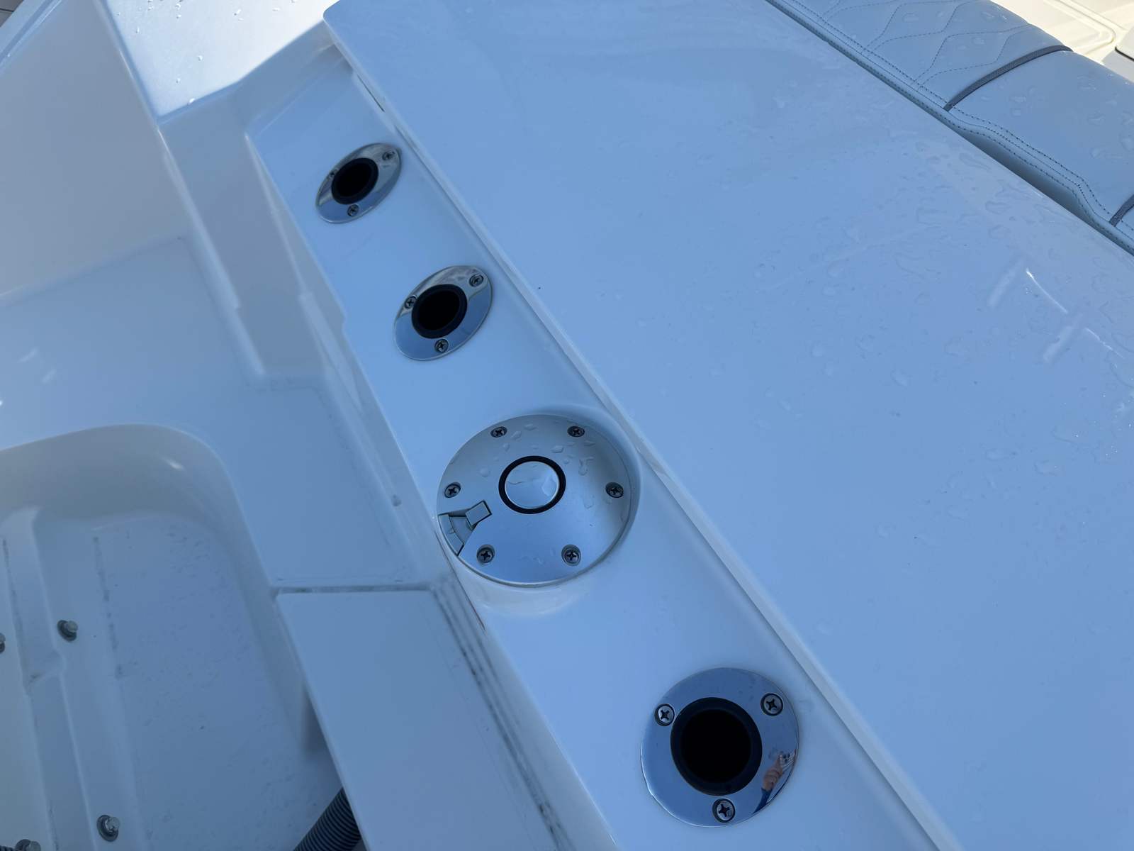 Practicality is at the core of the Pursuit S 288’s design. The manual engine flushing system simplifies maintenance, helping to extend the life of your engines and keep them running at peak performance. The dedicated storage for the fiberglass table ensures your deck remains uncluttered and ready for action, while the hardtop-mounted rod holders provide easy access to your fishing gear.The blue LED cockpit accent lights not only enhance the boat’s visual appeal but also improve visibility during nighttime activities. The pop-up ski tow at the transom is perfect for watersports enthusiasts, allowing you to quickly transition from fishing to fun on the water. With its thoughtful layout and user-friendly features, the S 288 makes every aspect of boat ownership more enjoyable and hassle-free.