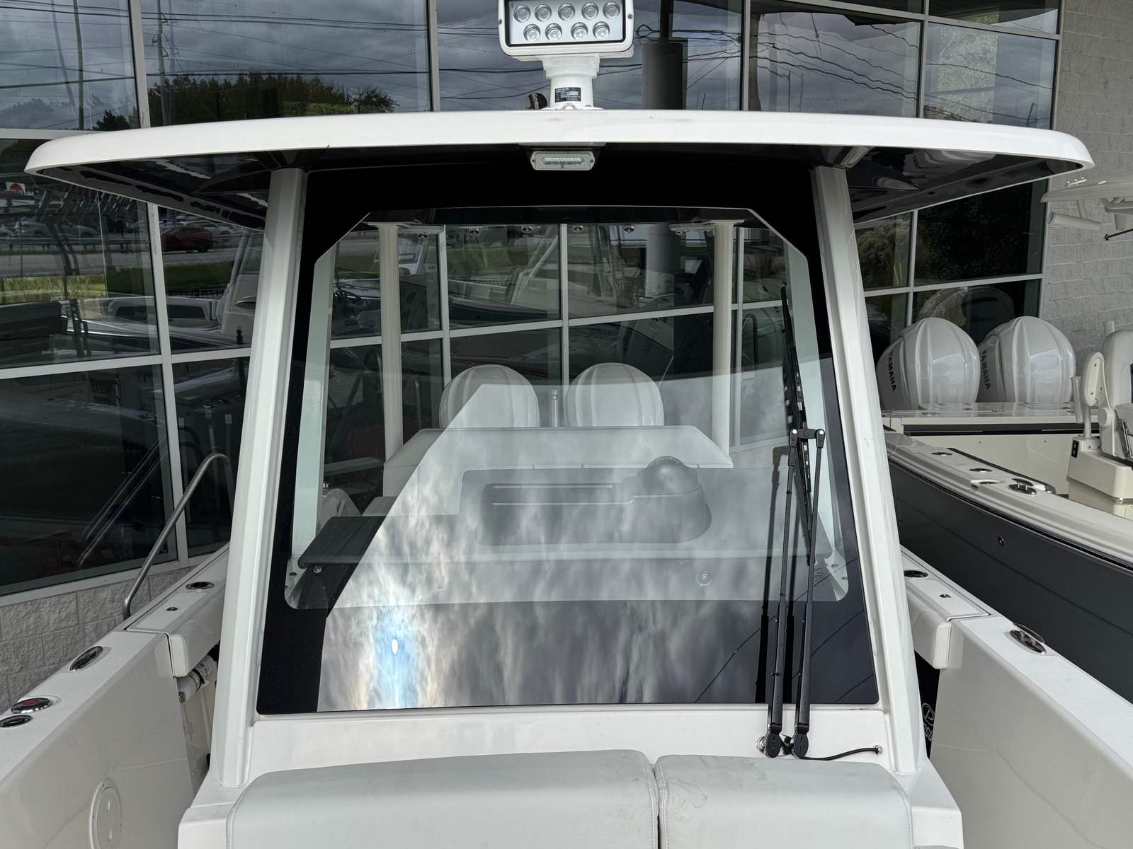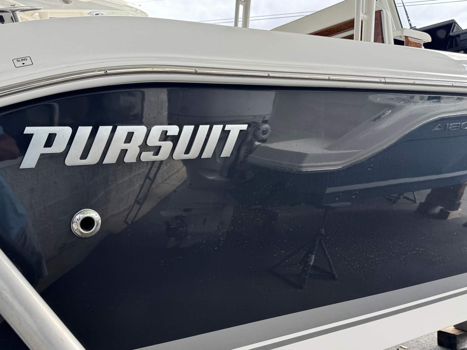 This Pursuit boat for sale is loaded with premium features that enhance both functionality and comfort. The hull, bootstripe, helm, and hardtop underside are finished in Carbon, creating a modern and sophisticated aesthetic. The hardtop is equipped with six mounted rod holders, perfect for anglers who want to keep their gear organized and accessible. The Bow/Cockpit Table, crafted from fiberglass and featuring dedicated storage, provides a versatile space for dining, socializing, or preparing gear. For those sunny days on the water, the Bow Mediterranean Style Sunshade is stowable, offering shade and comfort when you need it most. Dockside Power (110V/60Hz 30 AMP) with cord ensures you have reliable access to electricity for all your onboard needs.