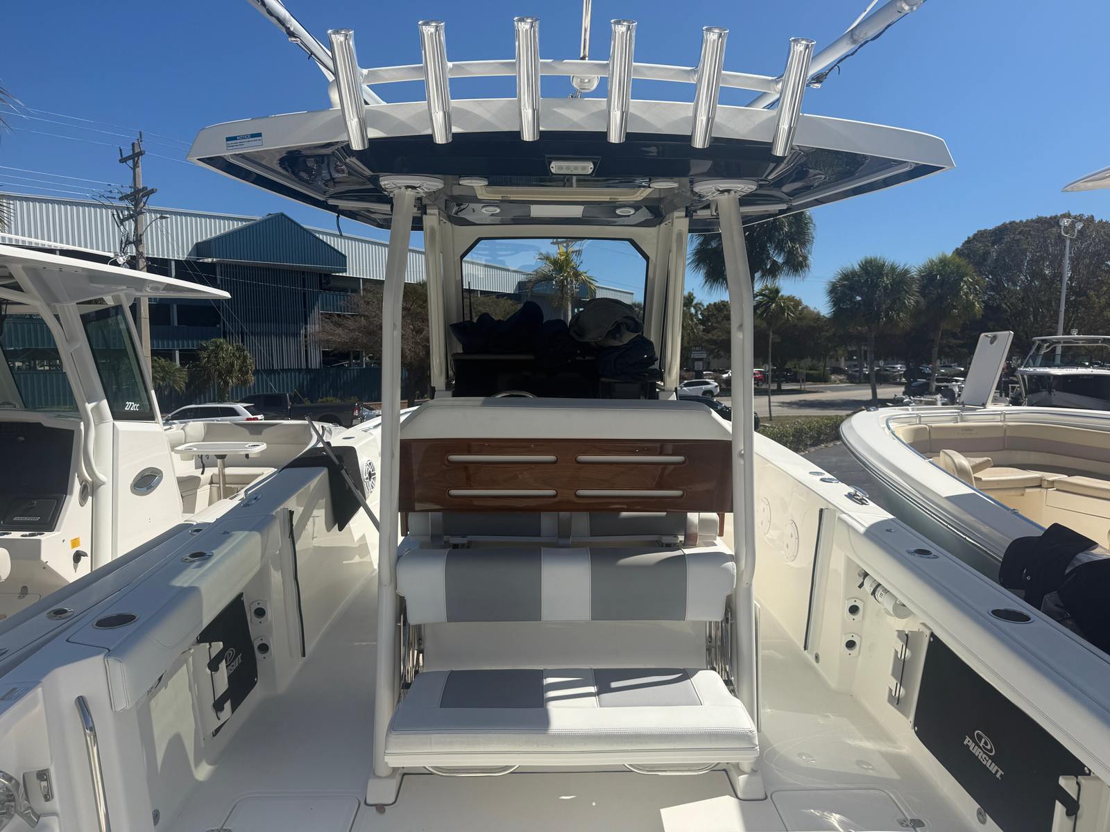 Features and Specifications: The Pursuit 288 S Center Console boat for sale is packed with features that elevate your boating experience. At 30 feet in length, it offers generous deck space for fishing, lounging, and entertaining. The Center Console layout provides unobstructed access around the boat, making it ideal for anglers who need freedom of movement and families who appreciate open, social spaces. The twin-engine configuration ensures powerful acceleration and reliable performance, while the modern helm station is designed for intuitive control and easy navigation. Every detail of the Pursuit 288 S reflects Pursuit’s commitment to quality, from its durable construction to its stylish finishes.