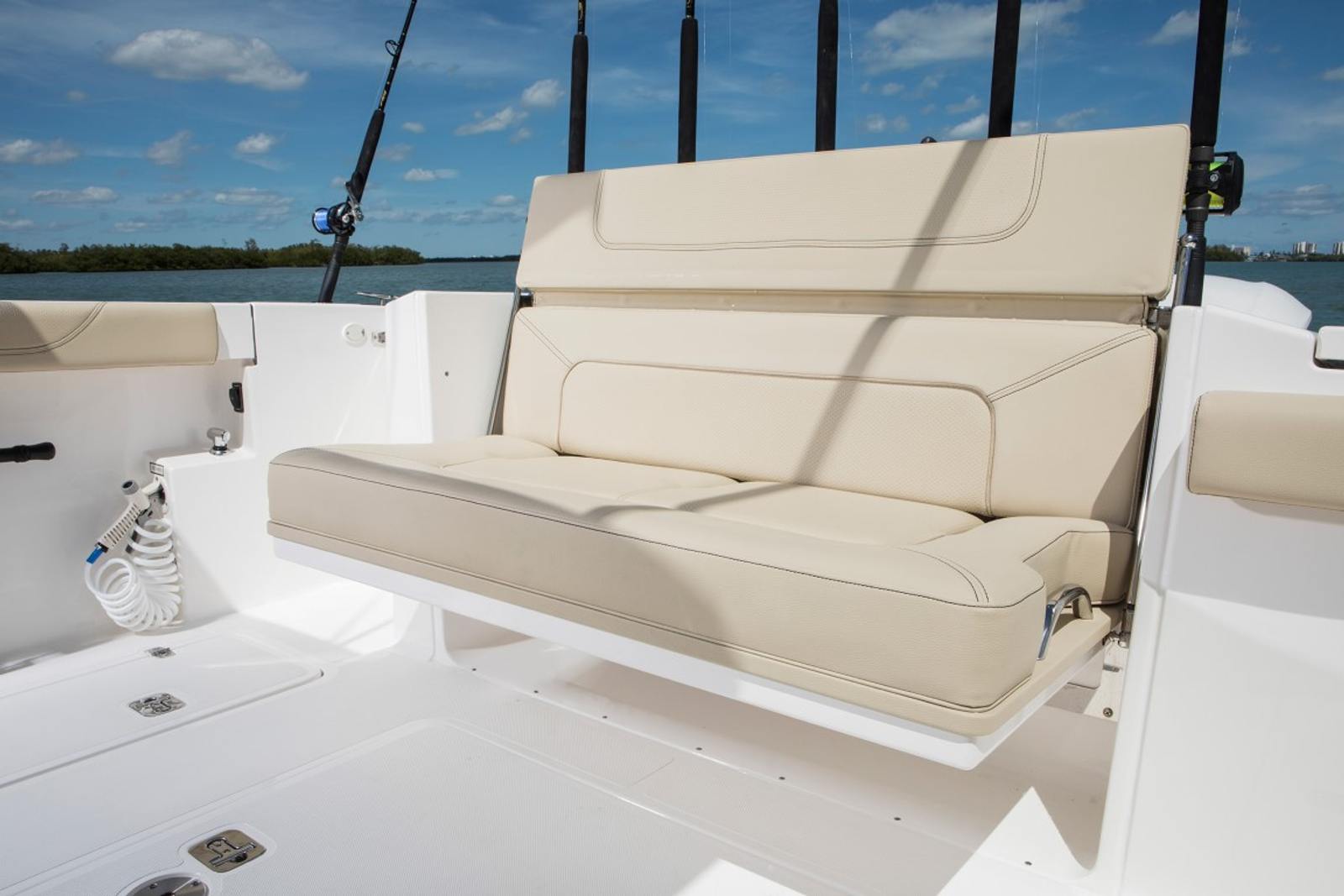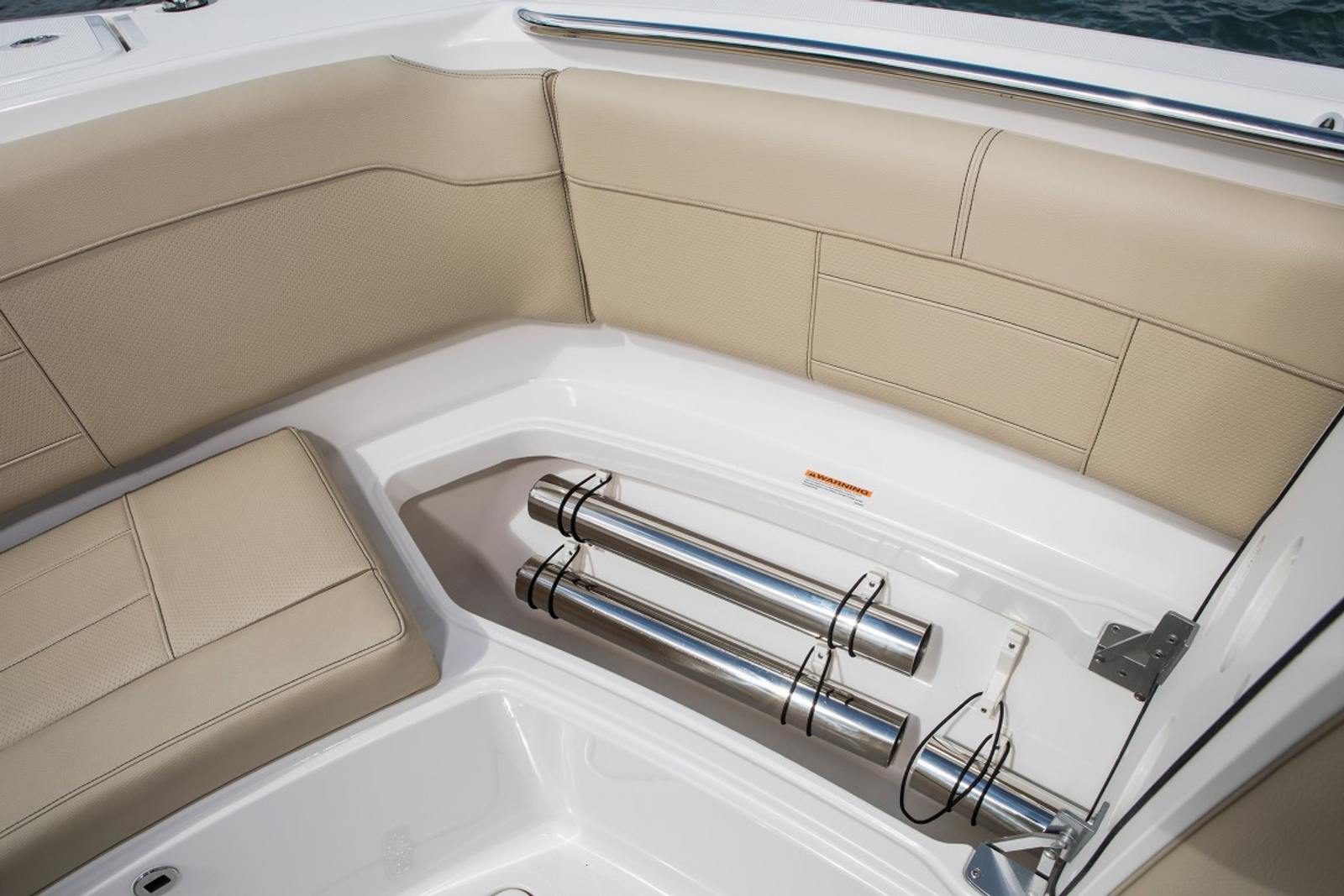 Owning the Pursuit S 328 Center Console means enjoying the best of both worlds—thrilling performance and luxurious comfort. The spacious layout is perfect for socializing, whether you are hosting friends for a sunset cruise or gathering the family for a day of water sports. The advanced Yamaha engine system and joystick control make handling this 34.5-foot Center Console boat effortless, allowing you to focus on fun and relaxation. The air-conditioned cabin provides a cool retreat on hot days, while the refrigerator keeps your favorite beverages chilled and within easy reach.