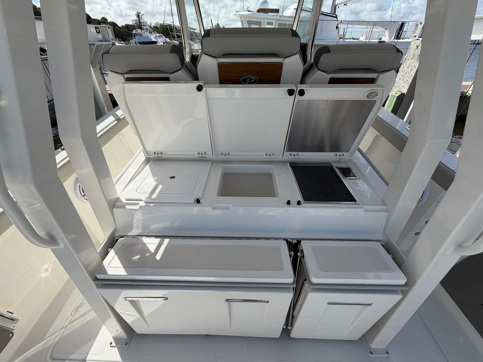 The 2026 Pursuit S 358 is a brand-new Center Console that measures an impressive 37.33 feet in length, offering ample space for family, friends, and all your favorite activities. Pursuit’s reputation for quality craftsmanship and attention to detail is evident in every inch of this vessel. The sleek Fresh White hull, accented by a Platinum bootstripe and Platinum accent, gives the S 358 a modern, sophisticated look that will turn heads at any marina or on open water. The Carbon helm and footrest, paired with the Fresh White hardtop liner, create a striking contrast, while the interior’s Tranquil Seas and Sea Salt color palette exudes a calming, upscale ambiance.