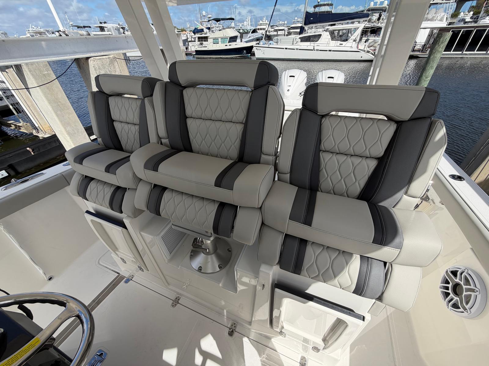 Owning the Pursuit S 358 Center Console means embracing a lifestyle of adventure, comfort, and social connection. The spacious layout allows for seamless movement around the deck, making it ideal for hosting gatherings, sunbathing, or simply enjoying the view. The advanced stabilization system ensures that everyone on board can relax without worrying about rough seas, while the powerful engines provide the thrill of speed and the confidence to explore new destinations. The air-conditioned cabin and cockpit offer a cool retreat from the sun, enhancing comfort during long days on the water.