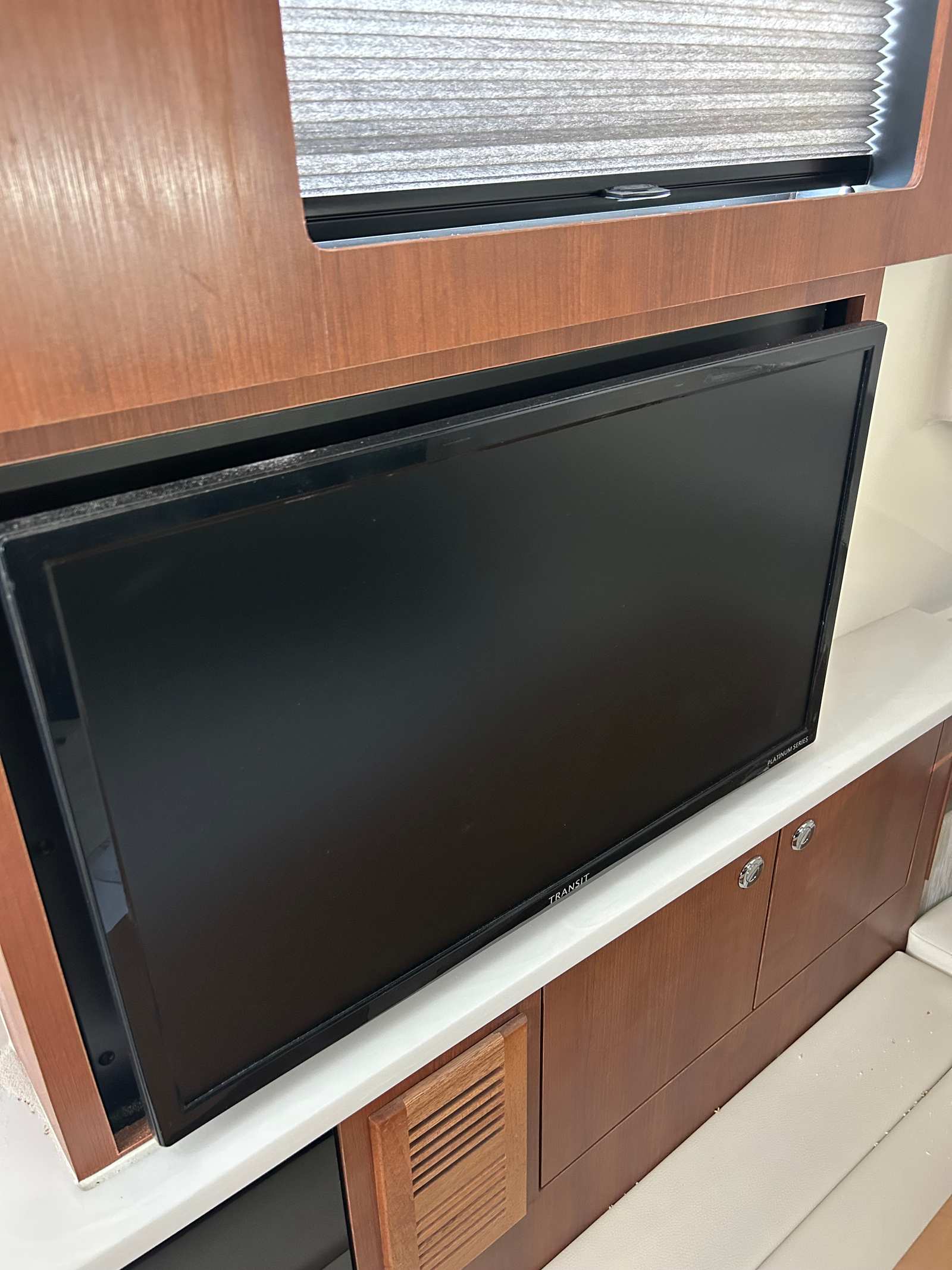 - Generator 120V/60Hz (5.0kw Fischer Panda Genset (16 gal diesel tank), Includes one GFI Outlet, includes 0.7 cu. Ft. Microwave (replaces upper storage in