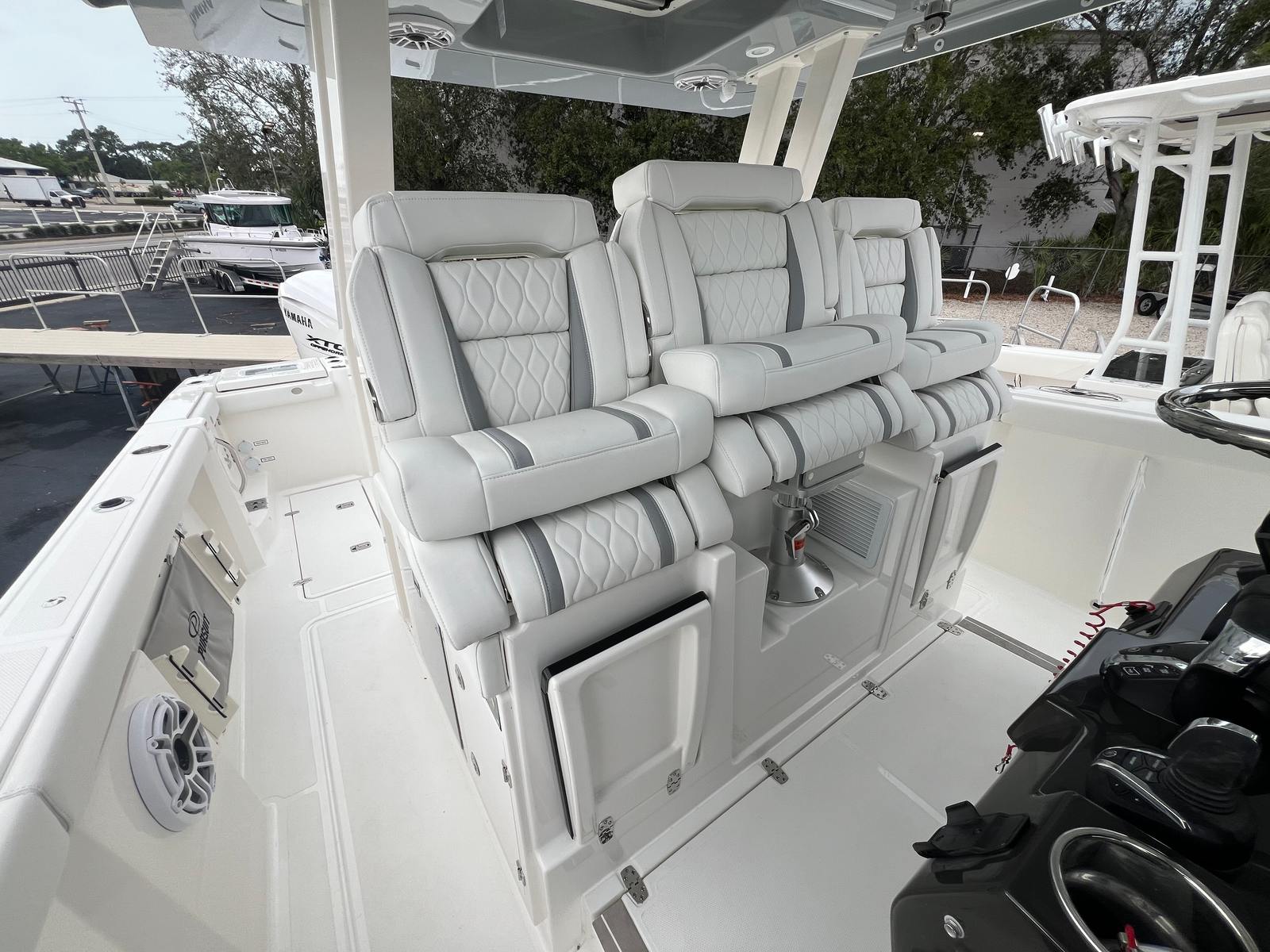 Power and precision define the Pursuit S 358’s on-water experience. Equipped with twin Yamaha F450S engines, this center console boat boasts a combined 900 horsepower, delivering exhilarating speed and responsive handling. Whether you are navigating coastal waters, heading offshore for a day of fishing, or simply cruising with friends and family, the S 358’s performance is both thrilling and reliable. The advanced Seakeeper Gyro Stabilization System ensures a smooth and stable ride, minimizing roll and enhancing comfort even in choppy conditions. With this level of power and stability, you can confidently explore new horizons and make the most of every outing.