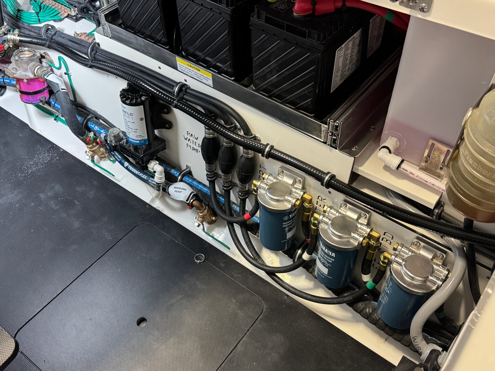 - Triple Yamaha® Digital 450 XTO (Pearlescent White) w/Integrated Electric Steering (DES), Helm Master® EX Digital Electronic Control (DEC) and Yamaha® Joystick Control with Full Maneuverability (Set PointTM and Autopilot), Multifunction Display Interface and Manual Engine Flushing System