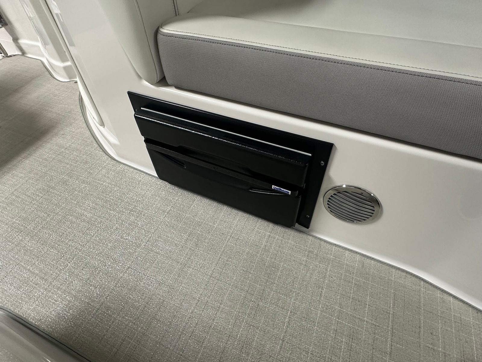 The Regal 28 Express is as practical as it is luxurious. With its efficient single engine and 300 horsepower, you’ll appreciate the balance between performance and fuel economy, making longer trips more affordable. The bow thruster simplifies docking, so you can confidently navigate tight spaces and busy marinas. The two batteries and battery charger provide peace of mind, ensuring your electronics and amenities stay powered throughout your adventures.Cockpit storage keeps your gear organized, whether you’re packing for a day of water sports or a weekend getaway. The cabinetry offers additional space for personal items, making overnight stays comfortable and convenient. The camper enclosure protects you from unexpected weather, while the Sea Grass Snap In carpet is easy to clean and maintain, keeping your boat looking its best season after season.