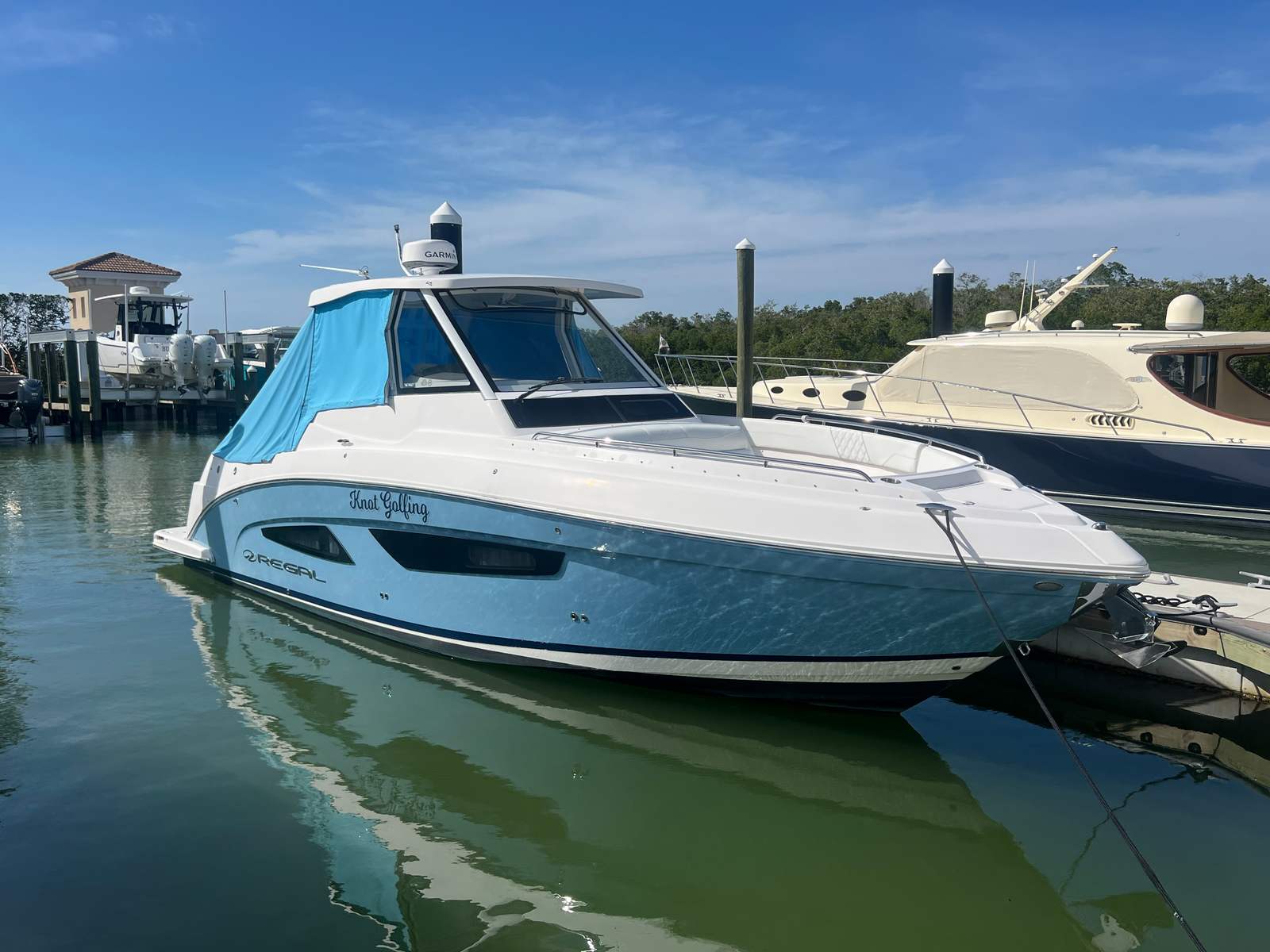 The Regal 33 SAV is as practical as it is stylish. Its Center Console design allows for easy movement around the deck, making it ideal for fishing, diving, or simply enjoying the view. The dual engines provide added peace of mind, offering redundancy and reliability for longer trips or offshore adventures. Docking is made simple thanks to the responsive handling and precise controls, while the efficient engines help keep fuel costs in check. The generous storage options make it easy to bring along everything you need for a day on the water, from fishing gear to water toys and picnic supplies. Whether you are an experienced boater or new to the lifestyle, the Regal 33 SAV makes ownership easy and enjoyable.