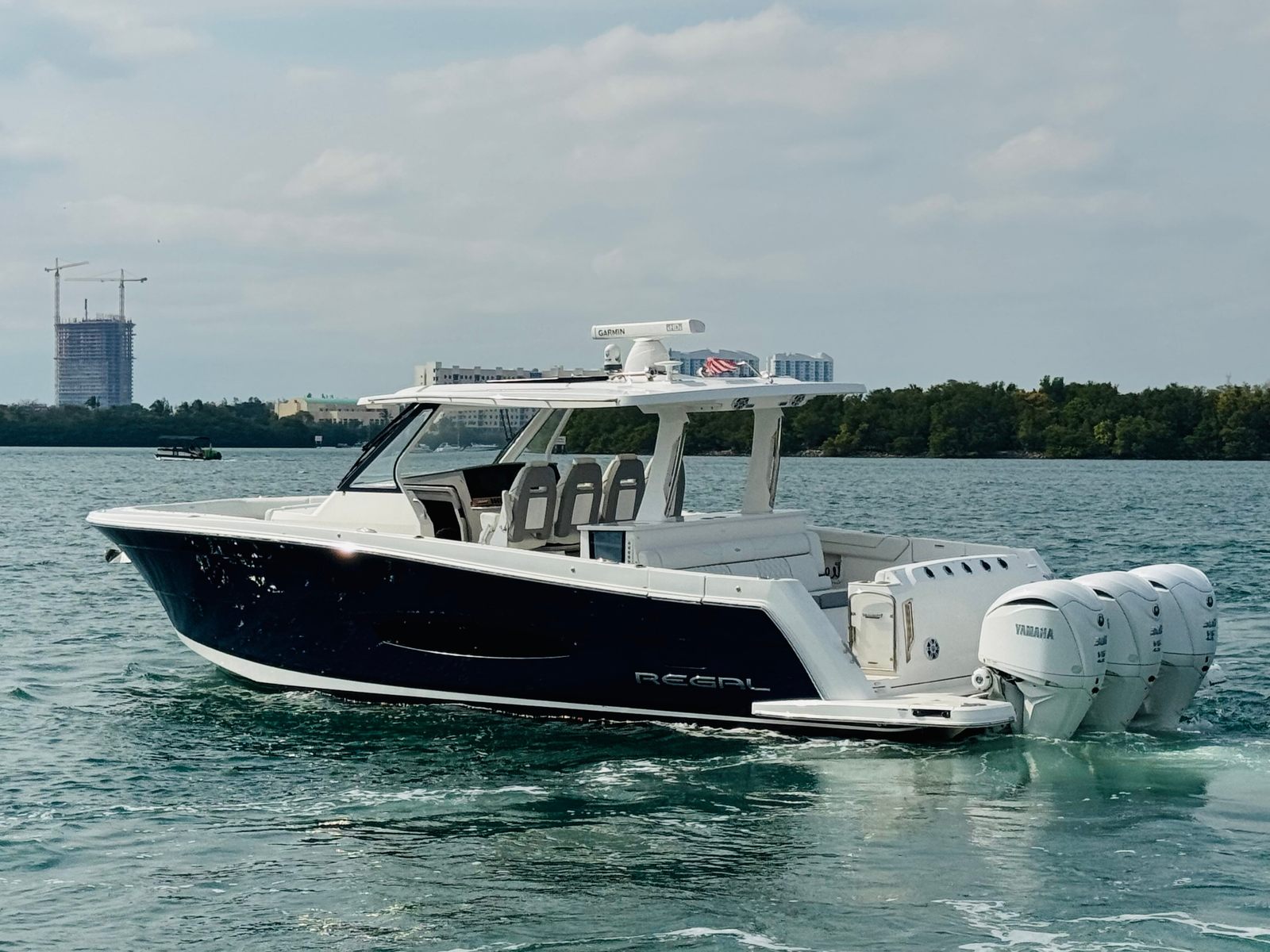 The Regal 38 SAV is packed with features that enhance both its functionality and comfort. Its spacious 38-foot length allows for ample room to relax, entertain, and enjoy the water. The yacht’s innovative layout is designed to maximize both indoor and outdoor living spaces, creating a seamless flow between the cockpit, helm, and lounge areas. The attention to detail in the design ensures that every inch of the boat is utilized efficiently, providing plenty of seating, storage, and amenities for you and your guests.As a Sports Activity Vessel, the Regal 38 SAV is engineered for versatility. Whether you are into fishing, watersports, or simply soaking up the sun, this yacht adapts to your preferred activities with ease. The triple-engine configuration not only boosts performance but also enhances maneuverability, making docking and handling straightforward even for less experienced boaters.