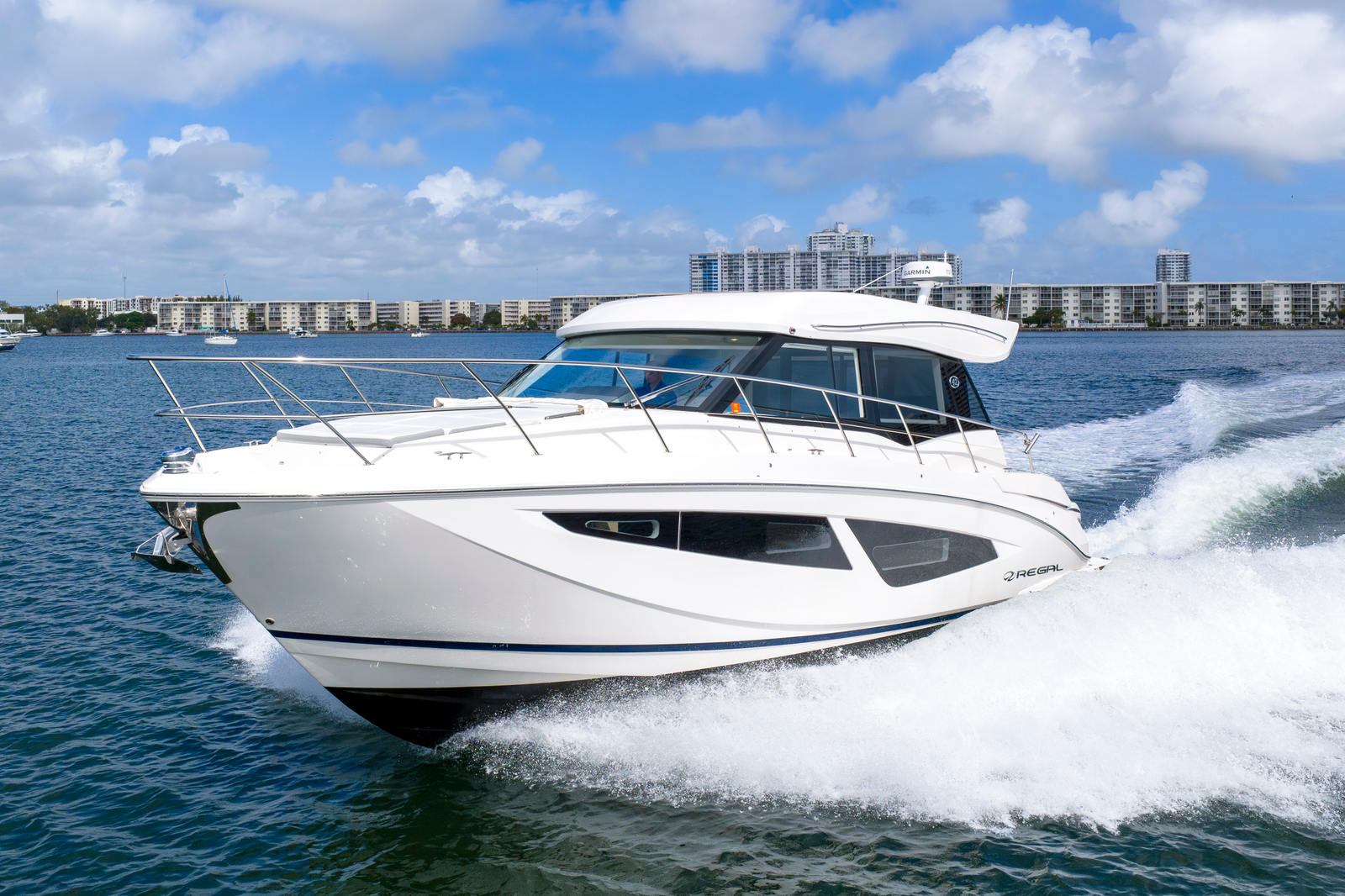 This 2024 Regal 42 XO is easily the most well equipped on the market. It was custom ordered from Regal factory and came completely loaded and then owner spared no expense with add-ons. It has DockMate Remote Docking, Reverso Auto Flush, Seakeeper 3, Humphrey Auto Trim Tabs, Starlink, and much more. This 42 XO is a highly equipped luxury outboard express cruiser powered by triple Yamaha 450s, delivering outstanding performance, range, and maneuverability. Designed for both entertaining and extended cruising, the 42 XO offers Regal’s spacious cockpit layout, enclosed salon with panoramic windows, and comfortable overnight accommodations.