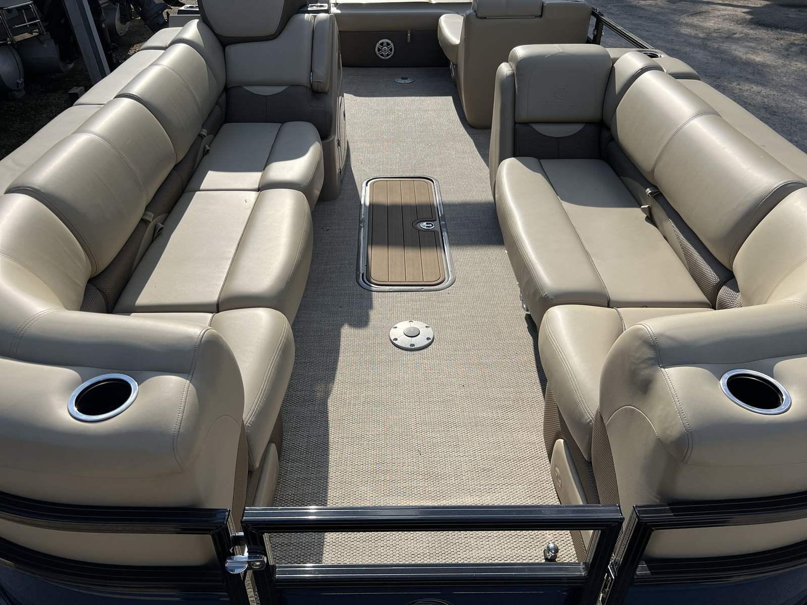 The 2023 Regency 250DL3 Sport Regency is a 25-foot pontoon boat that perfectly blends sophistication with recreational fun. As a used Regency boat for sale, this model offers the rare opportunity to own a nearly new vessel with only 228 engine hours, ensuring plenty of life and adventure ahead. Its impressive length provides ample space for friends and family, making it an ideal choice for social gatherings, relaxing cruises, or action-packed days on the water.