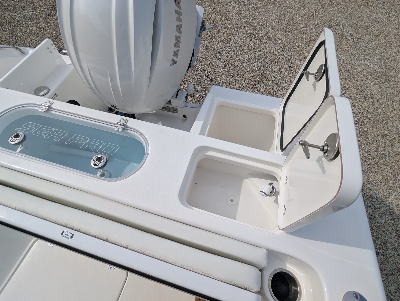 The Sea Pro 222 CC is designed with practicality in mind, making ownership easy and enjoyable. The battery charging system ensures your electronics and accessories are always ready for use, while the fresh water wash down simplifies post-trip cleanup. The console cover protects your helm from the elements, extending the life of your boat’s controls and electronics.Docking and maneuvering are a breeze thanks to the responsive steering and trim tabs, allowing you to navigate tight spaces with confidence. The efficient Yamaha engine helps keep fuel costs manageable, so you can spend more time on the water and less time at the pump. The Center Console design also provides ample storage for gear, tackle, and personal items, keeping the deck organized and clutter-free.