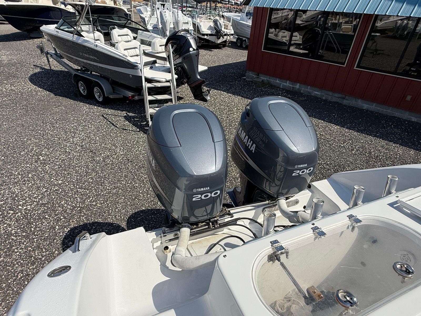 Power and performance are at the heart of the Sea Pro 270 CC. Equipped with twin engines delivering a combined 400 horsepower, this center console boat is built to handle both calm and challenging waters with ease. The dual-engine setup not only provides impressive acceleration and top-end speed but also ensures enhanced maneuverability and control, making docking and navigating tight spaces a breeze. With 828 engine hours, these engines have proven their reliability and are ready to power countless more adventures. Whether you are heading offshore for a day of fishing or cruising along the coastline, the Sea Pro 270 CC offers the performance you need for a thrilling and safe boating experience.
