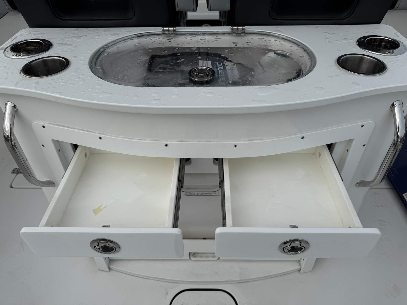 Practicality is at the heart of the Sea Pro 292 DLX’s design. The side entry door ladder makes boarding and disembarking a breeze, especially for swimmers, snorkelers, or anyone with mobility concerns. The pump out head with overboard discharge adds convenience for longer outings, eliminating the need for frequent stops at marinas.Storage is plentiful, with dedicated spaces for rods, gear, and personal items, keeping the deck uncluttered and organized. The stainless steel cup/rod holders and additional rod holders provide flexibility for both fishing and leisure activities. The wireless phone charger ensures your devices are always ready for navigation, communication, or entertainment.Docking and maneuvering are simplified thanks to the boat’s responsive handling and well-designed helm, making it easy to enjoy spontaneous trips or quick stops at your favorite waterfront destinations. The console cover protects your electronics and controls, reducing maintenance and preserving the boat’s value over time.