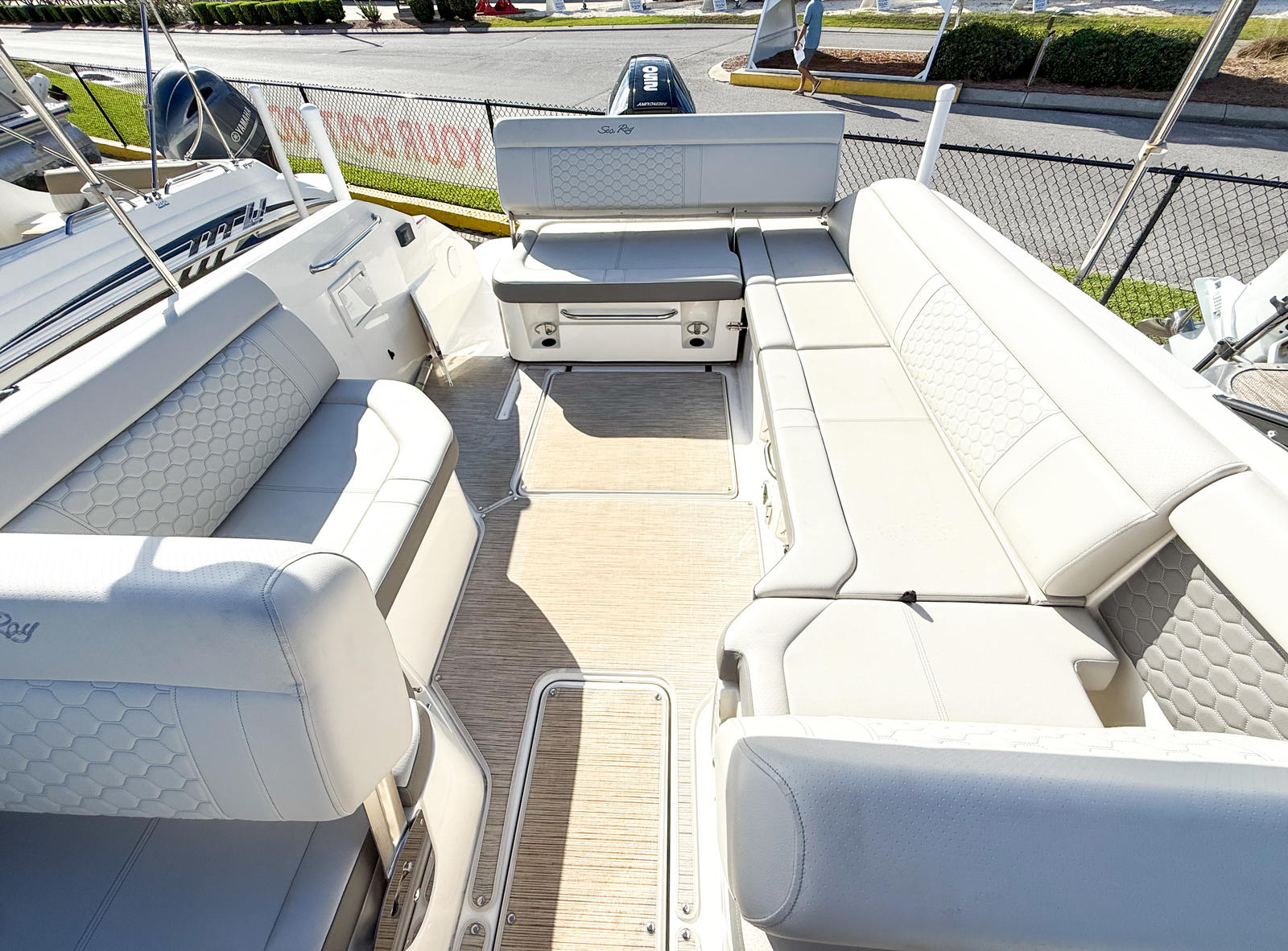 Powering this Sea Ray SDX 250 is a single engine boasting 250 horsepower. With just 34 hours on the engine, you can expect reliable performance and plenty of life left for future adventures. The SDX 250’s engine is engineered for smooth acceleration, responsive handling, and efficient cruising, making it ideal for a wide range of activities—from leisurely cruises to thrilling water sports. Whether you’re navigating open waters or exploring hidden coves, this Bowrider boat for sale delivers the power and agility you need for a memorable day on the water.