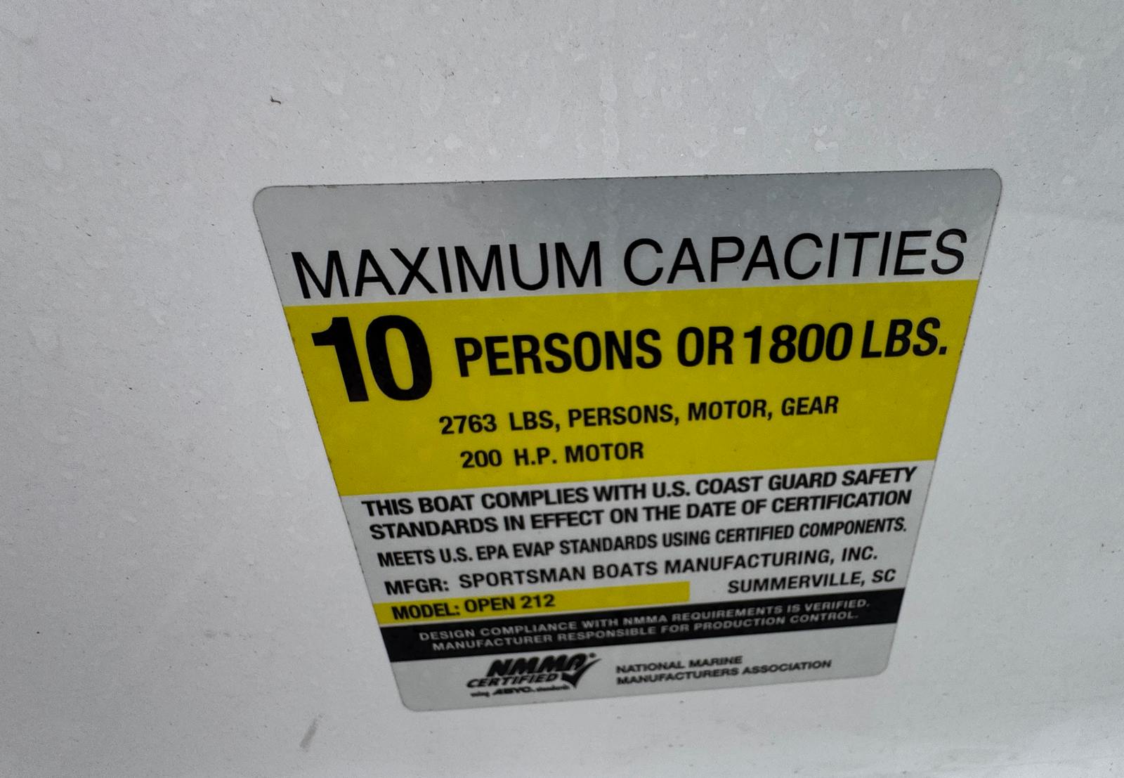 The Sportsman Open 212 is packed with features that elevate every boating experience. The Center Console layout is designed for optimal functionality, offering ample space for movement and easy access to all areas of the boat. The helm is intuitively arranged, allowing the captain to command the vessel with confidence and ease. The spacious deck provides plenty of room for casting lines, relaxing with friends, or setting up for a day of water sports. Storage compartments are thoughtfully integrated throughout the boat, ensuring that gear, tackle, and personal items are always within reach yet securely stowed away.The 2024 Sportsman Open 212 is constructed with high-quality materials and attention to detail, ensuring durability and longevity. The sleek, modern lines of the hull not only enhance the boat’s appearance but also contribute to its smooth ride and stability on the water. The used condition of this boat, combined with its low engine hours, means you can enjoy the benefits of a lightly used vessel that has been well cared for and is ready for immediate adventures.