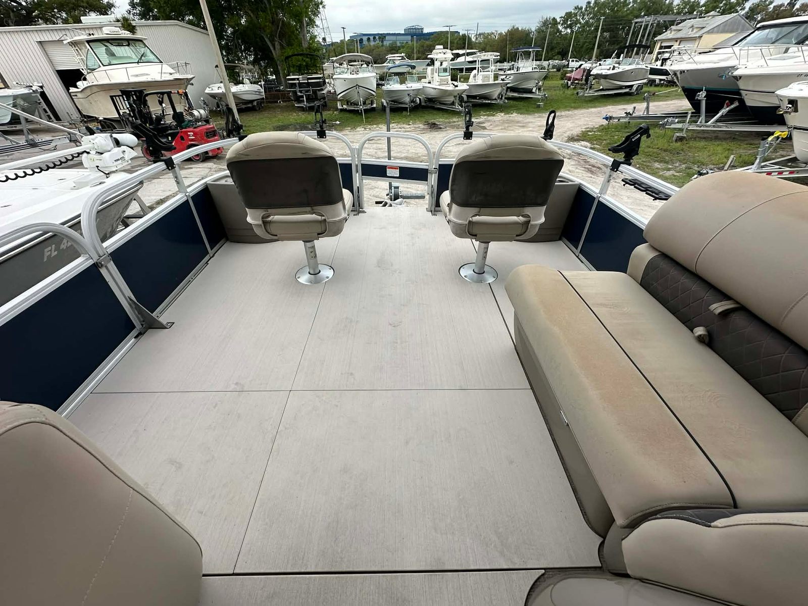 The SunTracker Fishin’ Barge 22 XP3 is the perfect combination of family cruising and serious fishing capability. Built on Tracker’s XP3 performance tritoon package, this boat delivers improved stability, speed, and handling compared to traditional pontoons. Powered by a Mercury 150HP outboard with only 80 hours, it has plenty of power for cruising, pulling tubes, or running to your favorite fishing spots.