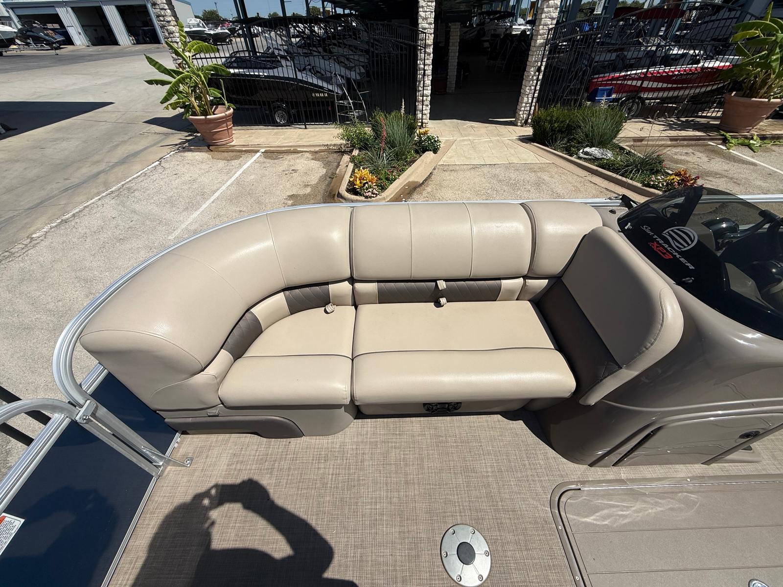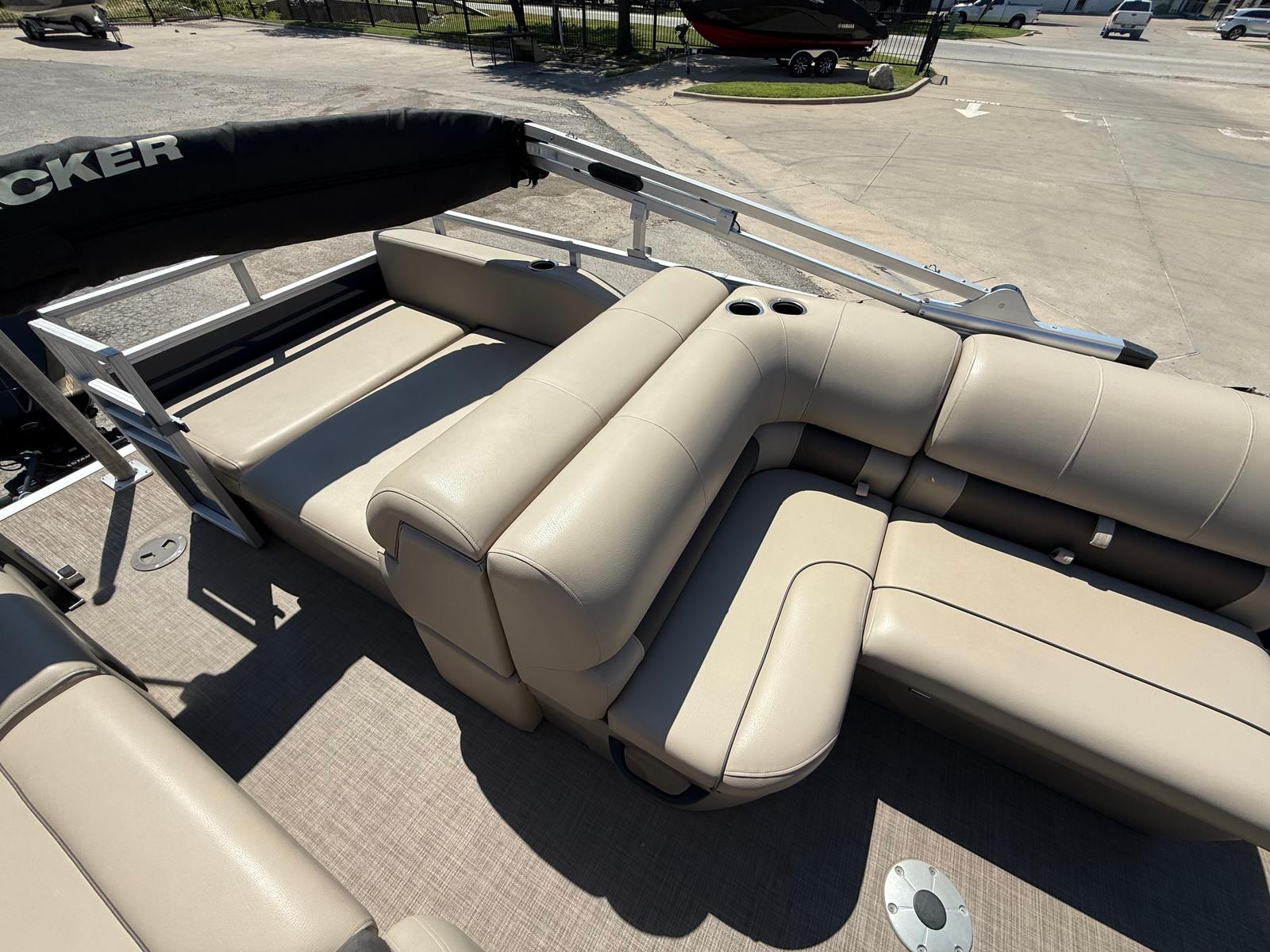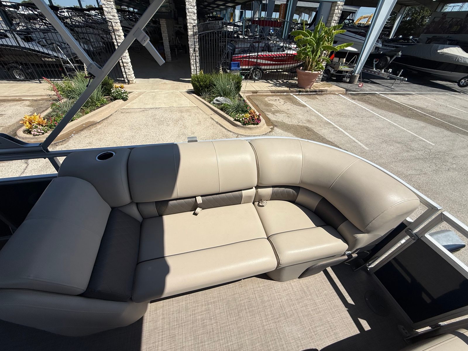 The Party Barge 22RF XP3 stands out with its array of special features designed to enhance every outing. The spacious deck layout provides plenty of seating and lounging options, ensuring that everyone on board can relax in comfort. The rear-facing lounge is perfect for sunbathing or keeping an eye on swimmers, while the open floor plan makes it easy to move about and socialize. The pontoon’s durable construction and quality materials reflect Sun Tracker’s commitment to long-lasting performance and style.With a length of 24.02 feet, this pontoon boat offers generous storage solutions for all your gear, from coolers and water toys to fishing equipment and picnic supplies. The thoughtful design ensures that everything has its place, keeping the deck uncluttered and safe. The used condition of this boat means you can enjoy premium features and craftsmanship at a more accessible price point, making it a smart investment for those seeking value without compromising on quality.