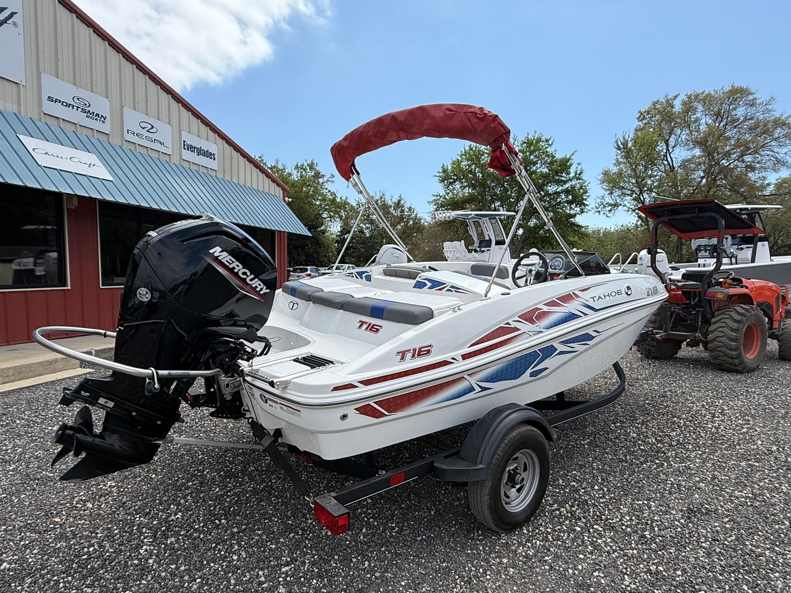 This Tahoe T16 Bowrider is packed with features designed to enhance your time on the water. The open bow layout creates a spacious and inviting atmosphere, allowing guests to relax and soak up the sun. The ergonomic seating arrangement ensures everyone on board has a comfortable spot, whether you’re cruising at speed or anchored in a quiet cove. The T16’s thoughtful design maximizes usable space, providing ample room for gear, snacks, and water toys.The boat’s 16.4-foot length strikes the perfect balance between maneuverability and capacity, making it easy to handle while still accommodating family and friends. The modern helm station puts all controls within easy reach, allowing the captain to navigate with confidence. The durable construction and quality materials used throughout the T16 ensure lasting performance and low maintenance, so you can spend more time enjoying the water and less time worrying about upkeep.
