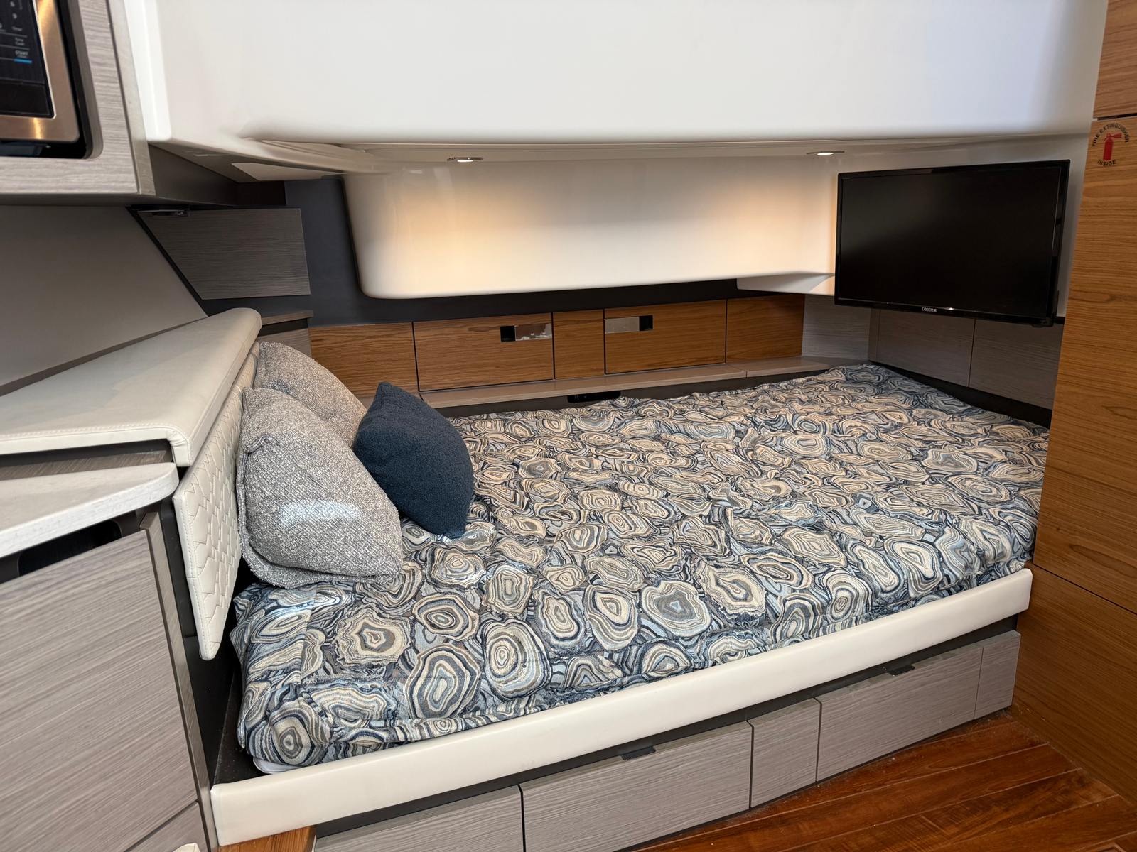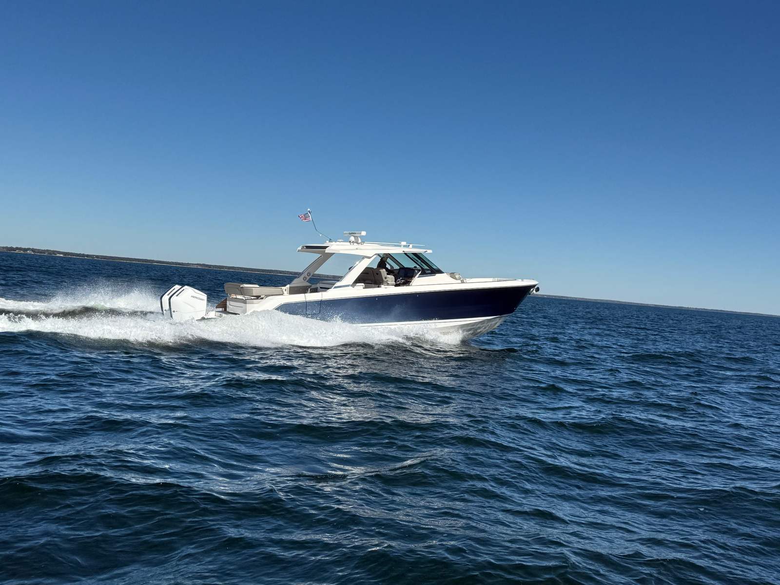 indoor/outdoor entertaining spaces—making it equally well suited for cruising, day boating, and hosting guests.